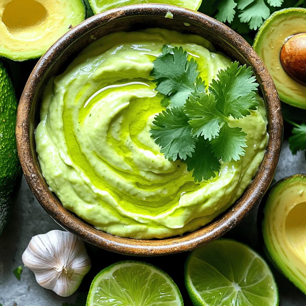 The main ingredients for Avocado Lime Crema are simple yet powerful. Ripe avocados bring a creamy texture. I love how they blend smoothly into a rich dip. Greek yogurt adds a nice tang. It also gives the crema a thick, luscious feel. Freshly squeezed lime juice gives it a zesty kick. This bright flavor makes the dip pop, keeping it fresh and lively.