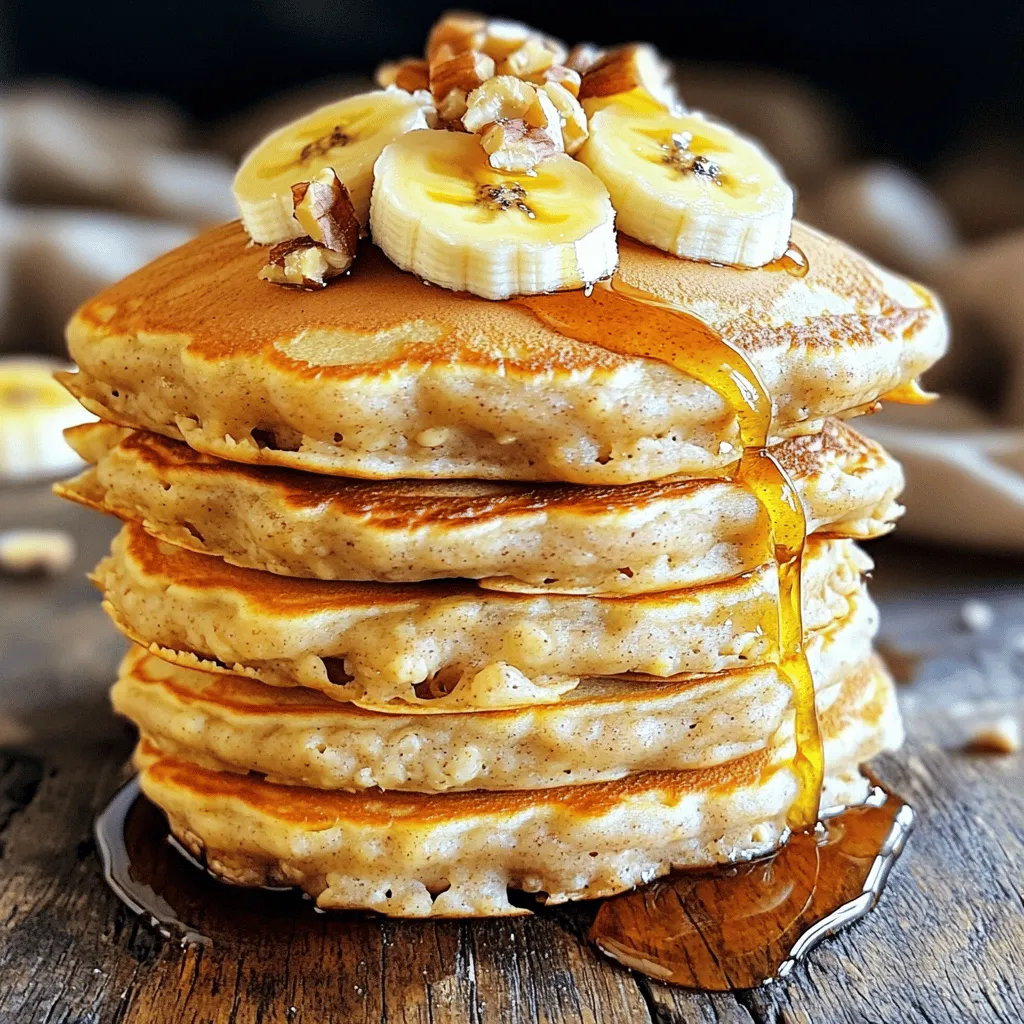 - 2 ripe bananas - 1 cup rolled oats - 1 cup milk (dairy or non-dairy) - 2 large eggs - 2 tablespoons honey or maple syrup - 1 teaspoon vanilla extract - 1 teaspoon baking powder - 1/2 teaspoon cinnamon - Pinch of salt - Coconut oil or butter for cooking Using ripe bananas is key. They add natural sweetness and flavor. Look for bananas with brown spots. They are perfect for this recipe. Rolled oats blend well and give a nice texture. You can pick regular or gluten-free oats. The milk can be any kind you enjoy. Almond, oat, or cow's milk all work great. Honey or maple syrup adds a hint of sweetness. You can adjust the amount based on your taste. Vanilla extract gives a nice aroma. Baking powder makes the pancakes fluffy. Cinnamon adds warmth and depth. A pinch of salt balances the sweetness in the pancakes. If you do not have ripe bananas, you can use applesauce. It still keeps the pancakes moist. For oats, quick oats can work, but they will change the texture. If you are vegan, replace eggs with flax eggs. Just mix 1 tablespoon of flaxseed meal with 3 tablespoons of water. Let it sit for 5 minutes to thicken. You can swap honey for agave syrup if you prefer. If you want to avoid dairy, use almond milk or coconut milk. For toppings, fresh fruits, nuts, or yogurt are great choices. Feel free to get creative! To start, gather all your ingredients. You need two ripe bananas, one cup of rolled oats, one cup of milk, two large eggs, two tablespoons of honey or maple syrup, one teaspoon of vanilla extract, one teaspoon of baking powder, half a teaspoon of cinnamon, and a pinch of salt. In a blender, add the bananas, oats, milk, eggs, honey or maple syrup, vanilla extract, baking powder, cinnamon, and salt. Blend the mixture until it is smooth and creamy. This step is crucial. A well-blended batter gives you light and fluffy pancakes. Let the batter rest for about five minutes. This helps it thicken slightly, making pancakes fluffier. Now it's time to cook. Heat a non-stick skillet or griddle over medium heat. Add a small amount of coconut oil or butter to grease the surface. This step prevents sticking and adds flavor. Pour about 1/4 cup of the batter onto the skillet for each pancake. Cook for two to three minutes. Watch for bubbles to form on the surface; this shows they are ready to flip. Carefully flip the pancakes with a spatula. Cook for an additional two to three minutes on the other side until they are golden brown. Repeat this process with the remaining batter, adding more oil or butter as needed. Serve the pancakes warm. You can top them with fresh fruits like berries or banana slices. Nuts add a nice crunch too. For extra sweetness, drizzle honey or maple syrup on top. Enjoy your delicious banana oatmeal pancakes! To get the best pancakes, blend your batter until smooth. This helps mix all the ingredients well. After blending, let the batter rest for about five minutes. This step helps thicken the batter. If it seems too thick, add a splash of milk. When cooking, keep the heat at medium. Too high of heat can burn the pancakes. Look for bubbles on the top. This means it’s time to flip. Cook until golden brown for a soft texture. One common mistake is not measuring ingredients correctly. Use a measuring cup for oats and liquids. Another mistake is cooking on high heat. This can burn the outside while leaving the inside raw. Don’t skip resting the batter. This step is key for fluffy pancakes. Lastly, avoid overcrowding the pan. Cook one or two pancakes at a time for even cooking. You can top these pancakes with many delicious options! Fresh fruits like berries or sliced bananas add sweetness. Nuts give a nice crunch. Drizzle honey or maple syrup for extra flavor. You can also add a sprinkle of cinnamon on top. For a twist, try a dollop of yogurt or nut butter. These toppings make your pancakes even more tasty! Enjoy experimenting with different combinations. {{image_2}} You can easily make these pancakes gluten-free. Just use certified gluten-free oats. Blend the oats into a fine flour before mixing. This way, the pancakes will still be fluffy and tasty. Want to mix things up? Add chocolate chips or nuts to the batter. Chocolate chips give a sweet touch, while nuts add crunch. You can also try berries or dried fruits for extra flavor. Each option makes the pancakes even more fun to eat. You can make these pancakes vegan with a few swaps. Replace the eggs with flaxseed meal or chia seeds. Use non-dairy milk, like almond or oat milk. Maple syrup can replace honey. These changes keep the pancakes delicious while fitting a vegan diet. To keep your leftover pancakes fresh, stack them in an airtight container. You can place parchment paper between each pancake to prevent sticking. Store them in the fridge if you plan to eat them within a few days. They will stay good for about 3-5 days. When it’s time to enjoy your pancakes again, you have options. You can use a microwave, skillet, or toaster. For the microwave, heat them for about 30 seconds to 1 minute. If you prefer a crispy edge, reheat in a skillet over medium heat for 2-3 minutes on each side. A toaster works well too; just pop them in until warm. Freezing pancakes is a great way to save time. To freeze, let the pancakes cool completely. Then, stack them with parchment paper in between and place them in a freezer-safe bag. They can last up to 2 months in the freezer. When you're ready, just reheat them as mentioned above. This makes breakfast quick and easy! Yes, you can use quick oats. They blend faster and can create a softer pancake. However, rolled oats give a chewier texture. Both work well, so choose what you have! To make these pancakes dairy-free, switch the milk for a non-dairy option. Almond, soy, or oat milk works great. Just make sure to check the labels for added sugars. This keeps the pancakes light and fluffy without dairy. Many toppings go well with these pancakes. Fresh fruits like berries or sliced bananas add sw