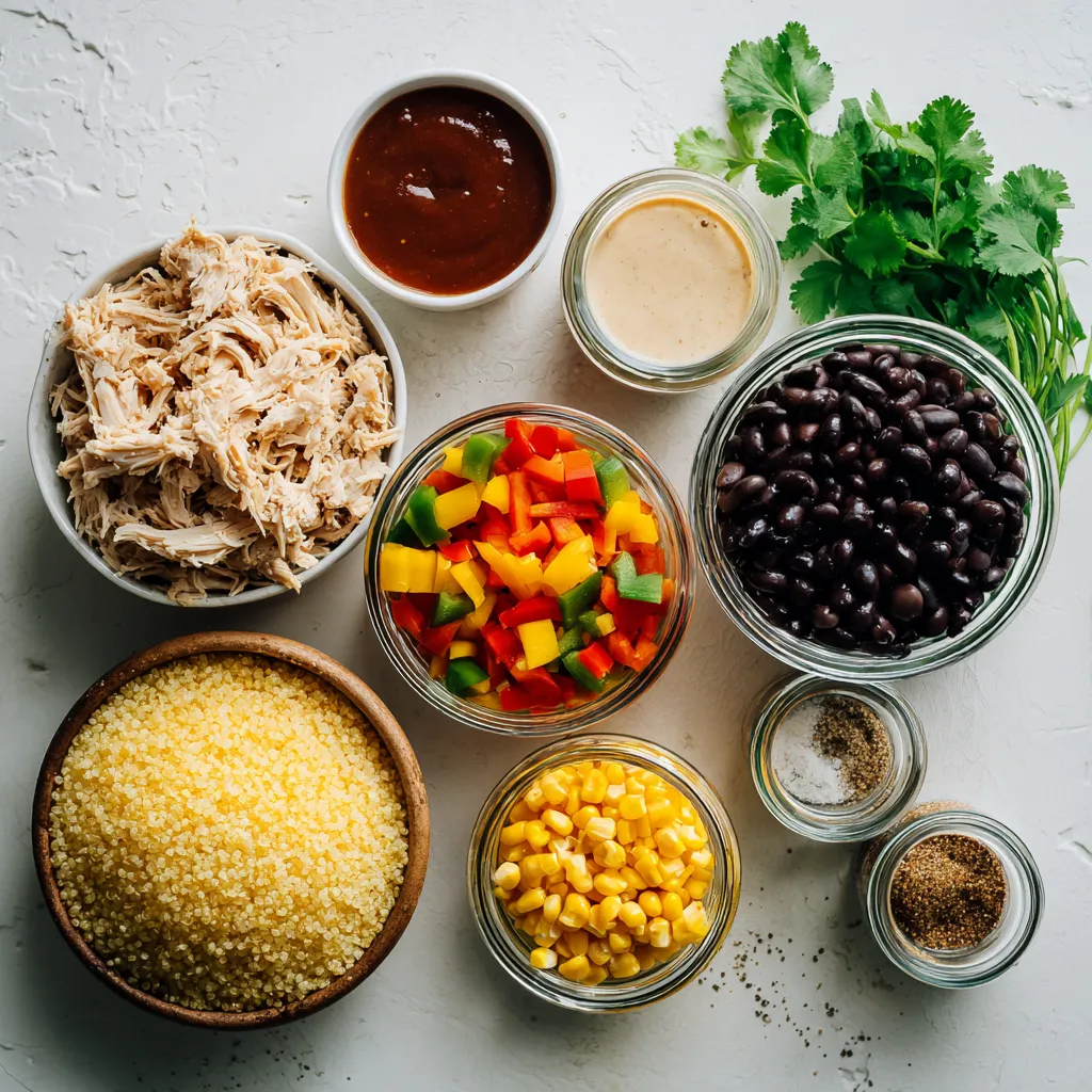These main ingredients create a mix of flavors. The chicken adds protein, while the BBQ sauce and ranch dressing give it a rich taste. Quinoa or rice makes it filling, and the veggies add color and crunch.