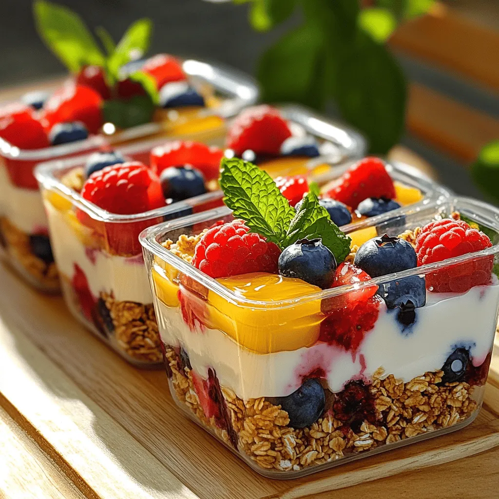 To start, gather the Greek yogurt, mixed berries, honey, and granola. You will mix the yogurt, honey, and vanilla to make a creamy base. Then, you mash some of the berries to create a chunky mix. Layer these with the yogurt and granola in your molds.