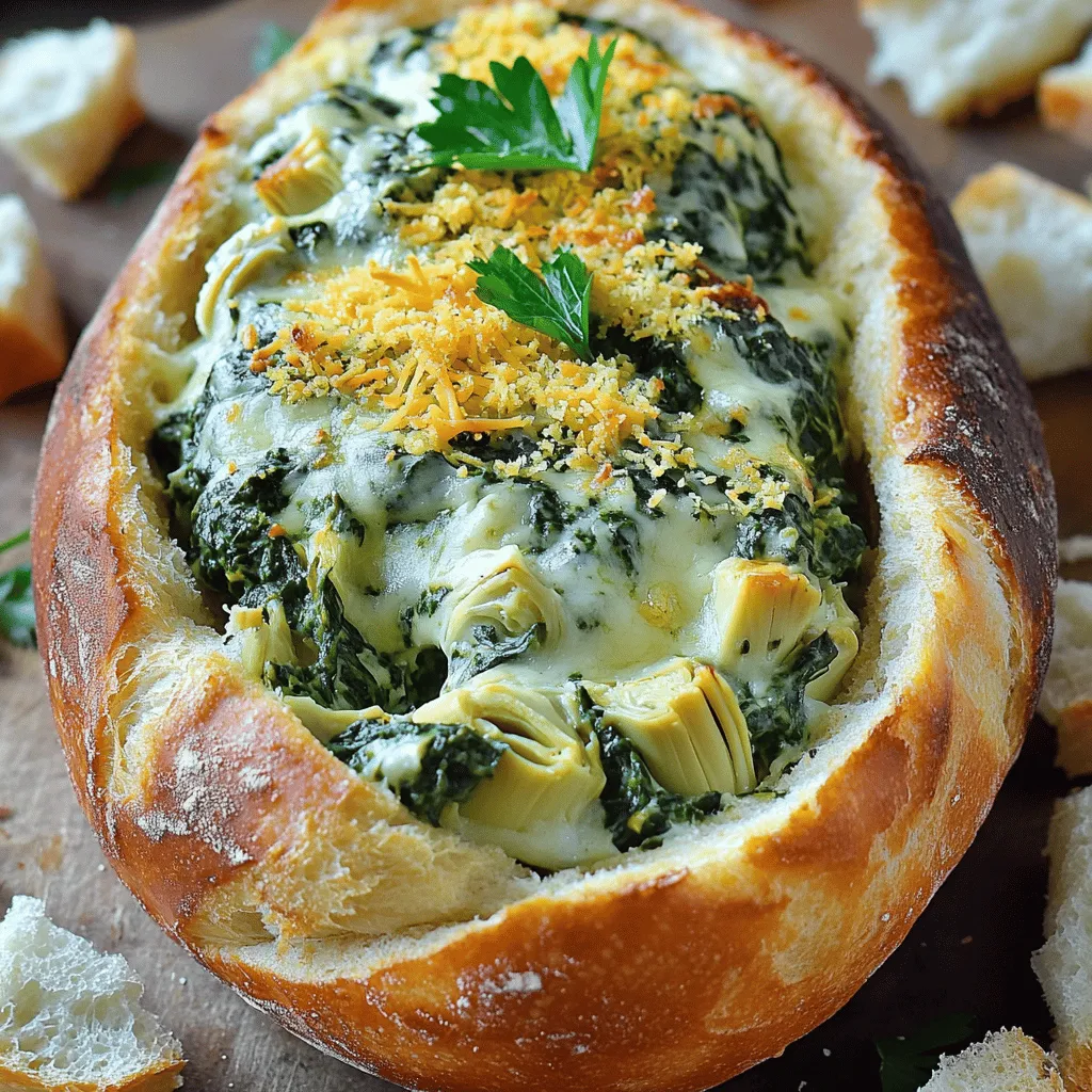 To create Cheesy Spinach Artichoke Bread, start by gathering all your ingredients. This dish is fun to make and easy to share. You’ll need a large crusty bread loaf, fresh spinach, artichoke hearts, and a few creamy cheeses.