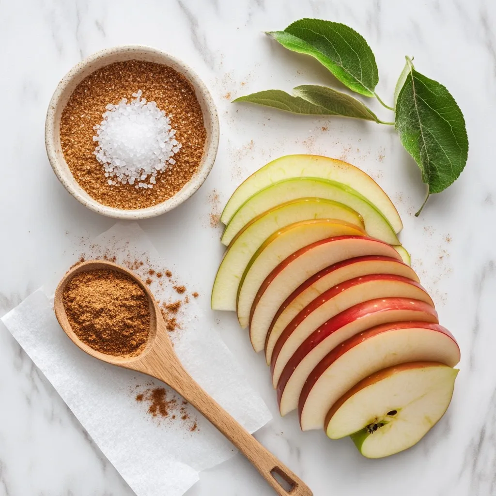 To make the best cinnamon sugar apple chips, you need fresh apples. I love using Fuji or Granny Smith apples. They both have a nice sweetness and crunch. You will also need granulated sugar and ground cinnamon for that classic taste. A pinch of salt adds balance to the sweetness.