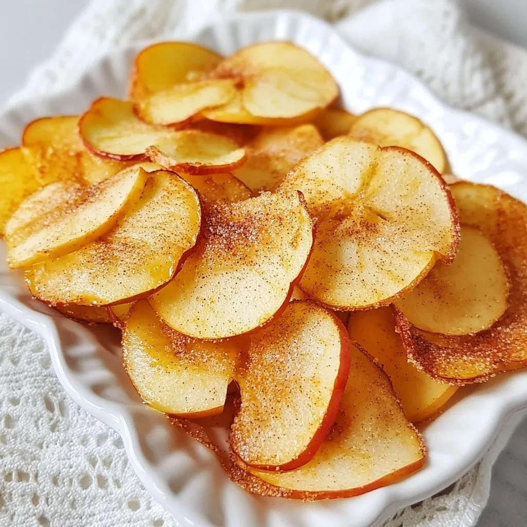 Deliciously crispy apple chips coated in cinnamon sugar, perfect for a healthy snack.