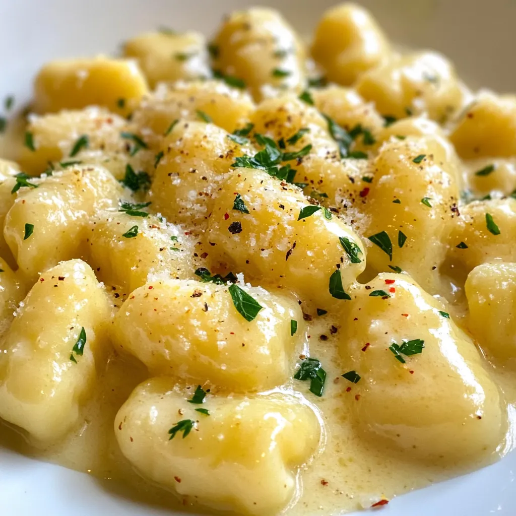 A rich and creamy gnocchi dish infused with garlic and Parmesan cheese.
