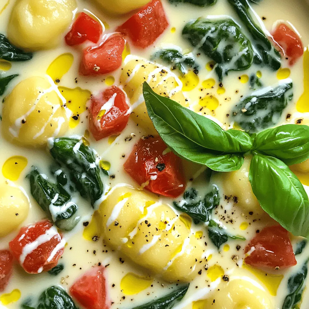 When making creamy spinach tomato gnocchi, start with a hot pot. Heat olive oil over medium heat. Sauté your onion until it turns clear. This step builds a strong base. Then, add minced garlic for aroma. Stir well to prevent burning. When you add tomatoes, let them soften. This helps release their natural sweetness.