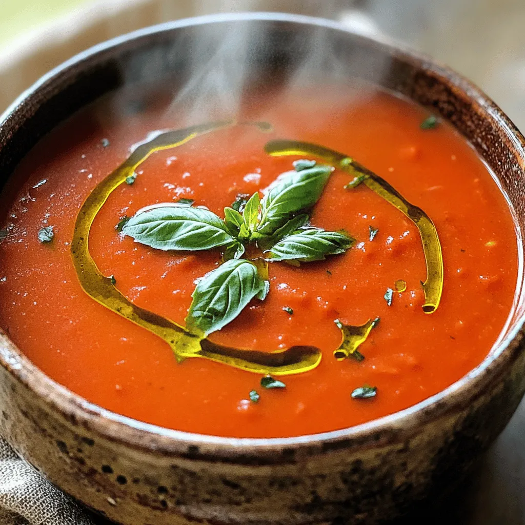 To create a delicious creamy tomato basil soup, you'll need the following ingredients: - 2 cans (14 oz each) diced tomatoes with herbs - 1 medium onion, chopped - 3 cloves garlic, minced - 1 cup vegetable broth - 1 cup heavy cream or coconut cream - 1 tablespoon sugar - 1 teaspoon dried basil or 1/4 cup fresh basil, chopped - Salt and pepper to taste - 2 tablespoons olive oil - Fresh basil leaves for garnish You can easily swap some ingredients if needed. Here are some ideas: - Use crushed tomatoes instead of diced tomatoes for a smoother texture. - Swap vegetable broth for chicken broth for a richer flavor. - Coconut cream works well for a dairy-free option. - If you have no fresh basil, dried basil still adds great taste. - Honey can replace sugar if you prefer a natural sweetener. Choosing the right ingredients makes your soup shine. Here are some tips: - Opt for high-quality canned tomatoes. Look for brands that use whole tomatoes. - Fresh herbs give your soup a vibrant taste. If you can, always use fresh basil. - Check the expiration dates on your broth and cream. Fresh ingredients make a big difference. - For the best flavor, use low-sodium broth. This allows you to control the saltiness. - Olive oil should be extra virgin for the finest taste and health benefits. First, gather all your ingredients. You will need: - 2 cans (14 oz each) diced tomatoes with herbs - 1 medium onion, chopped - 3 cloves garlic, minced - 1 cup vegetable broth - 1 cup heavy cream or coconut cream - 1 tablespoon sugar - 1 teaspoon dried basil or 1/4 cup fresh basil, chopped - Salt and pepper to taste - 2 tablespoons olive oil - Fresh basil leaves for garnish Start by heating the olive oil in a skillet over medium heat. Add the chopped onion and cook until it looks clear, about 5 minutes. Next, add the minced garlic and cook for another 1-2 minutes. This step brings a great smell to your kitchen. Once done, move the onion and garlic mix to the slow cooker. Pour in the diced tomatoes, including their juices, and the vegetable broth. Then, add the sugar, dried basil or fresh basil, salt, and pepper. Mix it all well. This is where the flavors start to blend. Now, cover your slow cooker and set it to cook. You have two options here. Cook on low for 4 hours or set it on high for 2 hours. The slow cooking will let the flavors deepen. You can check it lightly during cooking, but don’t open the lid too much. After the cooking time, it’s time to blend. Use an immersion blender right in the slow cooker for easy cleanup. If you don’t have one, you can carefully transfer the soup to a blender in batches. Blend until it is smooth and creamy. Next, stir in the heavy cream or coconut cream. Let it warm for another 10-15 minutes on low heat. This final step makes your soup rich and creamy. Adjust the seasoning if needed. Serve hot and garnish with fresh basil leaves for that extra touch. Enjoy the delightful flavors of your creamy tomato basil soup! To make your soup shine, focus on fresh ingredients. Use fresh basil when you can. It adds a bright flavor that dried herbs can't match. Sautéing the onion and garlic first helps bring out their sweetness. This step makes your soup rich and tasty. Add a splash of lemon juice. It brightens the soup and balances the flavors. For a twist, try adding a pinch of red pepper flakes. This adds warmth without too much heat. Taste as you go. Adjust salt and pepper to fit your flavor. To make the soup creamier, use heavy cream or coconut cream. If you want a lighter soup, use less cream. Blend until smooth for a silky texture. If you prefer a chunkier soup, blend only half. This gives you a mix of smooth and chunky bits. If the soup feels too thick, add more vegetable broth. For a thicker soup, blend in a bit of cooked potato. This adds creaminess without extra fat. Remember, blending hot soup can splash. Use an immersion blender for safety. One common mistake is not cooking the onion enough. If it’s not translucent, your soup might taste harsh. Another mistake is skipping the sauté step. This will skip the flavor boost you need. Be careful with salt. Too much can ruin your soup. Start with a little, then taste and adjust. Lastly, don’t skip the cream at the end. It adds the final touch of richness. Enjoy your cooking! {{image_2}} You can easily make this soup vegan. Swap heavy cream for coconut cream. Use vegetable broth to keep it plant-based. You can also add a splash of almond milk for creaminess. This way, you enjoy the same rich flavor without dairy. Want to make it heartier? Add proteins like cooked lentils or chickpeas. These will boost nutrition and flavor. You can also mix in veggies, like spinach or zucchini. They add color and health benefits. Just chop them small so they cook well in the slow cooker. Feel free to get creative with flavors! Add a pinch of red pepper flakes for a kick. A splash of balsamic vinegar can add depth. You can also throw in fresh herbs, like parsley or thyme. These custom add-ins make your soup unique and tasty. After making your creamy tomato basil soup, you want to store it right. Let it cool to room temperature first. Use an airtight container to keep it fresh. This soup lasts about 3 to 5 days in the fridge. Label your container with the date so you know when it was made. When you're ready to enjoy your soup again, reheat it on the stove. Pour the soup into a pot and heat it over low to medium heat. Stir often to avoid sticking. You can also use a microwave. Heat it in a microwave-safe bowl in 30-second bursts, stirring in between. Make sure it’s hot all the way through before serving. If you want to save some for later, freezing works well. Use a freezer-safe container. Leave some space at the top, as the soup will expand when frozen. It can last up to 3 months in the freezer. To thaw, move it to the fridge overnight. You can also thaw it in a pot over low heat, stirring often. After thawing, reheat it as described above. Enjoy your 