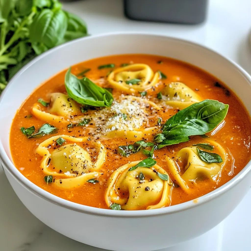 Keyword creamy, soup, tomato, tortellini, vegetarian
