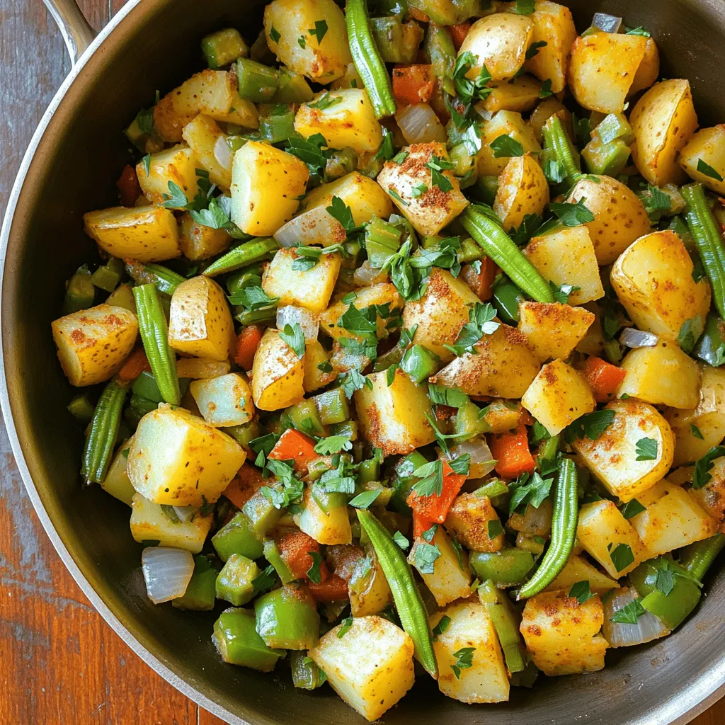 To make Easy Skillet Okra Hash, you need some key ingredients. Here they are: - 2 cups fresh okra, sliced - 1 large bell pepper (red or green), diced - 1 medium onion, diced - 2 medium potatoes, peeled and diced - 3 cloves garlic, minced - 1 teaspoon smoked paprika - 1 teaspoon ground cumin - Salt and pepper to taste - 2 tablespoons olive oil - 2 tablespoons fresh parsley, chopped (for garnish) These ingredients combine to give you a tasty and colorful dish. Fresh okra adds a unique texture. The potatoes provide a hearty base. Onions and bell peppers bring sweetness and crunch. If you want to enhance the flavor, consider these optional ingredients: - 1 teaspoon chili powder for heat - 1 tablespoon lemon juice for brightness - ½ cup corn for sweetness - Fresh herbs like thyme or cilantro for extra freshness Adding these can change the dish to fit your taste. Feel free to mix and match! You will need a few tools to make this dish: - A large skillet for cooking - A cutting board for chopping - A sharp knife for slicing - A wooden spoon for stirring - Measuring spoons for spices Having these tools ready makes cooking easier. A good skillet helps brown the veggies just right. Start by washing the okra. Slice it into small rounds. Next, take the bell pepper and dice it into small pieces. Use any color you like. Then, peel and dice the medium onion. This will add flavor. Finally, peel the potatoes and dice them into small cubes. Make sure all pieces are even for even cooking. Heat the olive oil in a large skillet over medium heat. Add the diced potatoes first. Cook them for 5-7 minutes. Stir them often. You want them to soften. After that, add the diced onion and bell pepper. Sauté these for 3-5 minutes. They should become tender. Next, stir in the sliced okra and minced garlic. Cook for another 5 minutes. This lets the okra get tender and slightly crisp. Now, sprinkle the smoked paprika, ground cumin, salt, and pepper over the mix. Stir well to coat everything in spices. Cook for an extra 2-3 minutes. This will bring all the flavors together. Once cooked, take the skillet off the heat. Garnish your okra hash with freshly chopped parsley. This adds a nice color and fresh taste. For a fun twist, serve it in the warm skillet. You can also spoon it onto plates. Drizzle a bit of olive oil on top for shine. If you like, top it with a fried or poached egg for extra protein. Enjoy your meal! For the full recipe, check the detailed instructions above. When selecting okra, look for firm pods. They should be bright green and smooth. Avoid any with brown spots or signs of wilting. The best okra is small to medium-sized, as larger pods can be tough. Fresh okra has a slightly fuzzy texture, which is normal. You can test freshness by gently bending the pod; it should snap easily. To get the best texture, avoid overcooking the okra. Sauté it just until tender. This keeps it crisp and flavorful. If you want to reduce the sliminess of okra, try soaking it in vinegar for 30 minutes before cooking. Also, cook it on medium-high heat to achieve a nice sear. Adding salt too early can draw out moisture, so add it later in the cooking process. One common mistake is overcrowding the skillet. This can make your okra steam instead of sauté. Cook in batches if needed. Another mistake is not preparing the vegetables properly. Make sure to dice them evenly for even cooking. Lastly, don’t skip the spices! The smoked paprika and cumin are key to a flavorful dish. For the full recipe, check out the Easy Skillet Okra Hash. {{image_2}} You can boost the protein in your okra hash easily. Try adding cooked sausage or bacon for a savory twist. Chopped chicken or shrimp also works great. If you want a meat-free option, use canned beans or lentils. They add protein and texture. You can mix and match proteins to fit your taste! Making this dish vegetarian or vegan is simple. Just skip any meat and focus on the veggies. You can add more beans or tofu for protein. Swap out the olive oil for avocado oil if you want. Use vegetable broth instead of oil for a lighter option. This way, you keep all the flavors without any meat. Seasonal veggies can change your okra hash game. In summer, add fresh tomatoes or zucchini for a juicy touch. In fall, try sweet potatoes or butternut squash for warmth. Each season brings new flavors. Use what you find at your local market. This practice keeps your meals fresh and exciting. Don’t forget to check the Full Recipe for the base dish! To store leftover okra hash, let it cool first. Once cool, transfer it to an airtight container. It stays fresh in the fridge for about 3-4 days. Always label your container with the date. This way, you know when to eat it. When ready to eat, reheat the hash in a skillet. Add a splash of water or olive oil to keep it moist. Heat on medium until warm, about 5-7 minutes. You can also microwave it for 2-3 minutes. Stir halfway through to ensure even heating. If you want to freeze the okra hash, pack it in a freezer-safe bag. Squeeze out as much air as possible before sealing. It can last in the freezer for up to 3 months. When ready to eat, thaw in the fridge overnight. Reheat in a skillet for the best flavor and texture. For the full recipe, check the Easy Skillet Okra Hash section. Yes, you can use frozen okra. It is easy and quick. Frozen okra is already cut and ready to use. Just add it straight to the skillet. However, thaw it first. This helps reduce excess moisture. Too much water can make your hash soggy. For the best taste, fresh okra is great, but frozen works well too. You can serve this dish with many things. Try it with eggs for breakfast. A fried egg or poached egg adds protein and flavor. You can also pair it with grilled meats. Chicken or sausage works nicely. Serve it with a fresh salad for a lighter meal. Adding some crusty bread or cornbread on the side is great too. Yes, Easy Skillet Okra Hash is gluten-free. All the ingredients are safe for those av