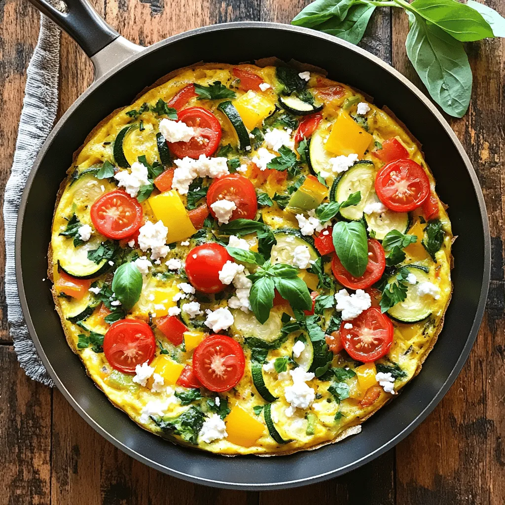 To make a tasty veggie frittata, you need fresh, simple ingredients. Here’s what you’ll need: - 6 large eggs - 1/2 cup milk (or plant-based milk) - 1 cup spinach, chopped - 1 bell pepper, diced - 1 small zucchini, diced - 1/2 cup cherry tomatoes, halved - 1/4 cup onion, finely chopped - 1/2 cup feta cheese, crumbled - 2 tablespoons olive oil - Salt and pepper to taste - Fresh herbs (like basil or parsley) for garnish These ingredients create a colorful and nutritious frittata. Eggs are the base, while veggies add flavor and texture. Using the right tools makes cooking easier and more fun. Here are some must-have items: - A large mixing bowl - A whisk for blending eggs and milk - An oven-safe skillet - A spatula for stirring and serving - A knife and cutting board for prepping veggies With these tools, you’ll cook with ease. An oven-safe skillet lets you start on the stove and bake in the oven. When picking vegetables, freshness matters. Here are some tips to help you choose well: - Look for bright colors and crisp textures. - Avoid any wilting or browning. - Check for firmness, especially in bell peppers and zucchini. - Smell your produce; fresh veggies have a pleasant scent. Fresh vegetables enhance the frittata's taste. They also add nutrition and make your meal visually appealing. Enjoy experimenting with different veggies for unique flavors. For the complete recipe, check the Full Recipe. Start by preheating your oven to 350°F (175°C). This heat will cook the frittata evenly. Next, grab an oven-safe skillet. I love using cast iron for this. Add two tablespoons of olive oil to the skillet and set it on medium heat. This oil helps the veggies cook well and adds flavor. In a large bowl, crack six large eggs. Add half a cup of milk, which can be regular or plant-based. Whisk them together until smooth. You want the eggs and milk to blend well. Season this mix with salt and pepper to your taste. This step builds a tasty base for your frittata. Once the oil is hot, add the finely chopped onion and diced bell pepper to the skillet. Sauté them for about 3-4 minutes. You want them soft but not mushy. After that, toss in the diced zucchini and halved cherry tomatoes. Keep stirring for another 2-3 minutes. Now, add one cup of chopped spinach. Cook until it wilts, about 1-2 minutes. This veggie mix brings color and flavor to your frittata. Now, pour the egg mixture over your sautéed veggies in the skillet. Gently stir to spread everything out evenly. Sprinkle half a cup of crumbled feta cheese on top. This cheese adds a nice salty kick. Carefully place the skillet in the preheated oven. Bake for 20-25 minutes. You’ll know it’s done when the frittata is set and slightly golden on top. After baking, let it cool for a few minutes. Slice it into wedges, and if you like, garnish with fresh herbs. Your Easy Veggie Frittata is now ready to serve! Check out the Full Recipe for details on ingredients and times. To get a fluffy frittata, use fresh eggs. Fresh eggs beat better and create air. Whisk the eggs with milk until smooth. This mix adds creaminess. Avoid overcooking the frittata. It should be slightly jiggly in the center when you take it out of the oven. The residual heat will finish cooking it. Seasoning is key! Start with salt and pepper, but feel free to add more. Try garlic powder for depth or smoked paprika for a hint of warmth. Fresh herbs also add a great touch. Basil and parsley work well. Add them right before serving for the best flavor. Preheat your oven to 350°F (175°C) before you start. This ensures even cooking. While sautéing, keep an eye on the veggies. They should be soft but not mushy. Bake the frittata for 20-25 minutes. Check it at 20 minutes. The edges should look set, and the top can be golden. Enjoy every bite of this veggie delight! For the full recipe, refer to the section above. {{image_2}} You can change the taste of your veggie frittata with different vegetables. Try using broccoli, carrots, or kale. Each veggie adds its unique flavor and texture. You can also mix in fresh herbs like thyme or dill. They bring a pop of brightness and aroma. Just chop them finely and add them to the mix. This makes your frittata more fun and tasty! Cheese can change how your frittata tastes. Feta is great, but you can try others too. Goat cheese adds a tangy kick. Cheddar gives a rich, creamy flavor. If you want a milder taste, use mozzarella. Just remember to crumble or shred the cheese before adding it. This way, it melts evenly in the eggs. Mixing different cheeses can create a delightful taste. You can easily make this frittata vegan or dairy-free. Instead of eggs, use chickpea flour mixed with water. This combination will bind and set like eggs do. For a creamy texture, use cashew cream or silken tofu. Just blend it until smooth. For milk, choose almond or soy milk instead of regular milk. These swaps keep the dish tasty and enjoyable for everyone. To store leftover frittata, let it cool first. Once cool, wrap it in plastic wrap or foil. You can also use an airtight container. This keeps the frittata fresh. Place it in the fridge for up to three days. If you want to keep it longer, consider freezing. When you are ready to eat the frittata, reheating is key. You can use the oven or microwave. For the oven, preheat it to 350°F (175°C). Place the frittata on a baking sheet. Heat for about 10-15 minutes. This helps it get warm and crispy. If using a microwave, place a slice on a plate. Heat for 1-2 minutes. Cover it with a damp paper towel to keep it moist. Freezing frittata is easy and smart. Cut the frittata into portions. Wrap each piece in plastic wrap, then in foil. This prevents freezer burn. You can freeze it for up to two months. When you want to eat it, thaw it in the fridge overnight. Then reheat as mentioned above. Enjoy your meal anytime! For the full recipe, check out the complete guide. You can serve the frittata with a light salad. A mixed green salad go