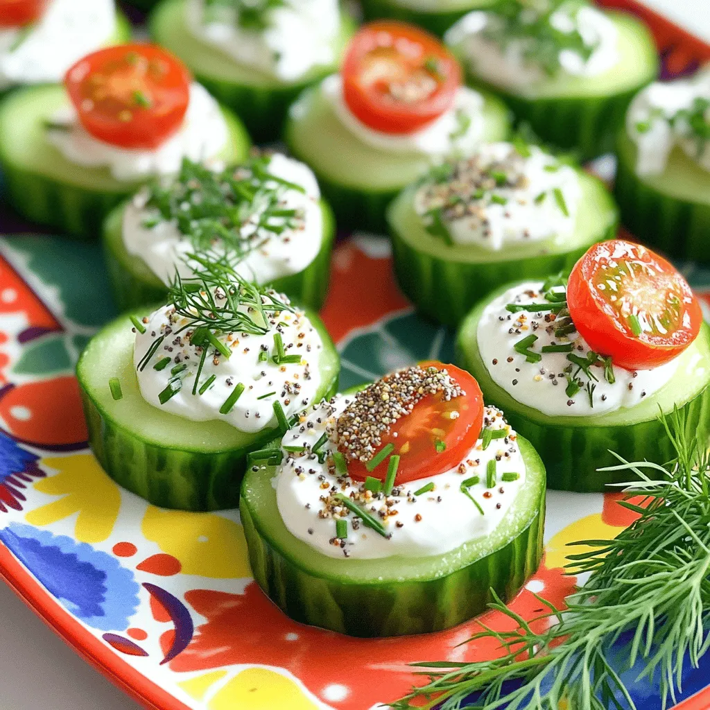 - Presentation Tips: Serve the cucumber bites on a vibrant platter, and consider adding a few sprigs of fresh dill for an extra decorative touch.