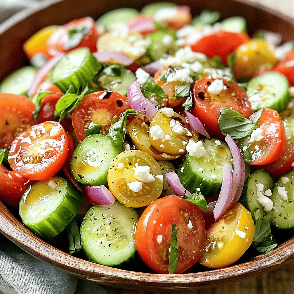 Fresh Tomato Cucumber Salad offers bright flavors and crisp textures. It shines with simple, fresh ingredients. You will want to use ripe tomatoes. They add sweetness and juiciness. Look for cucumbers that are firm and fresh. Their crunch enhances every bite. The red onion adds a nice sharpness. Basil brings a burst of freshness.