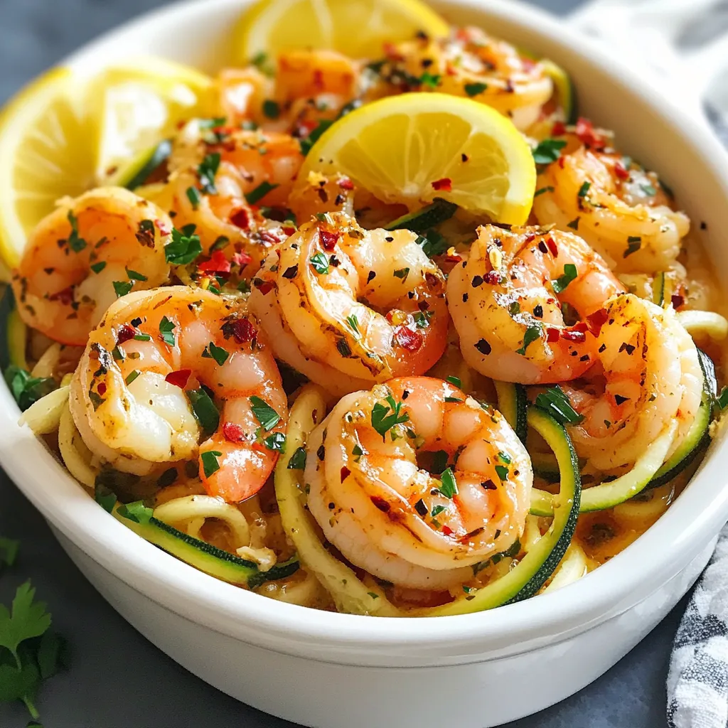 These ingredients blend together to create a dish that is both fresh and flavorful. The zoodles serve as a light base, while the shrimp adds protein and a satisfying taste. The garlic and butter bring richness, and the red pepper flakes add a gentle kick. Fresh lemon juice brightens the dish, balancing the flavors perfectly.