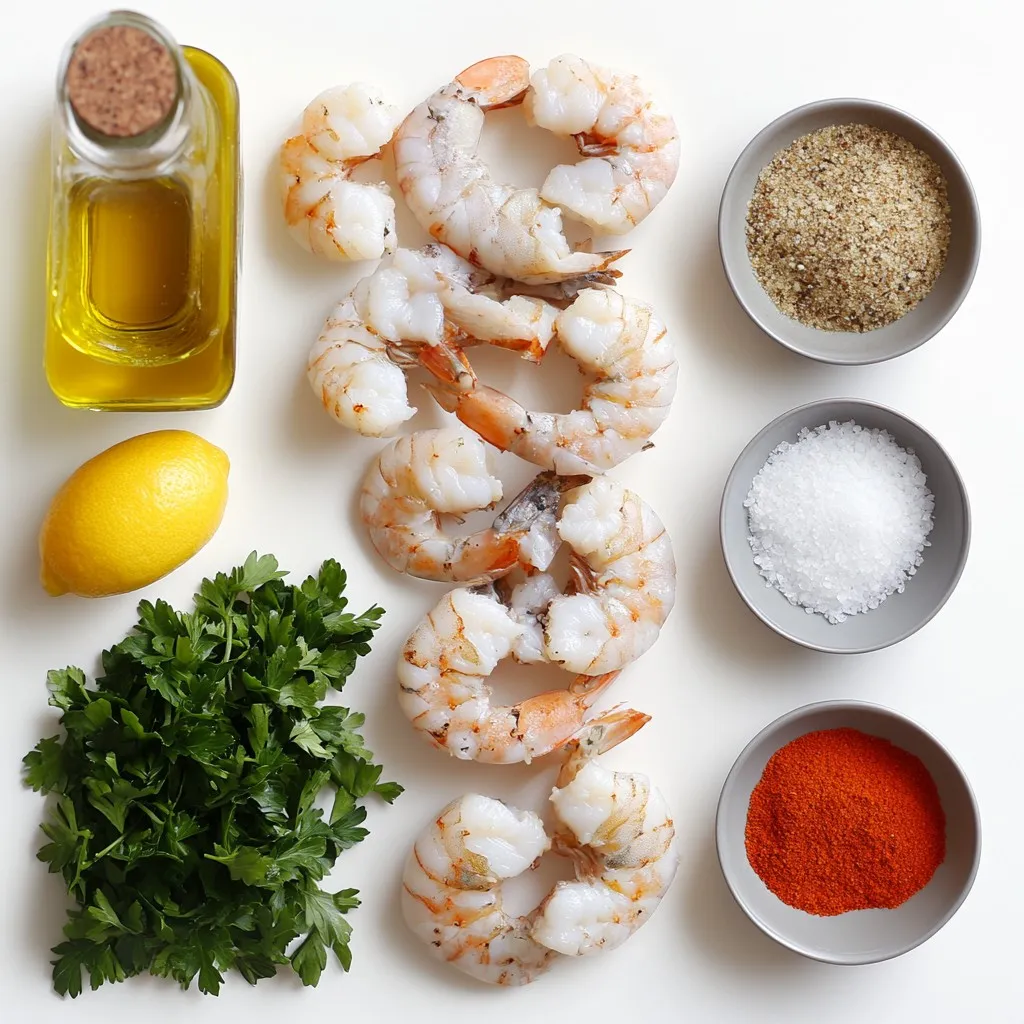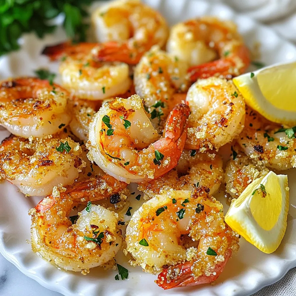 - 1 pound large shrimp - 3 tablespoons olive oil - 4 cloves garlic - 1/2 cup grated Parmesan cheese - 1 teaspoon paprika - 1 teaspoon onion powder - 1/2 teaspoon salt - 1/4 teaspoon black pepper - 2 tablespoons fresh parsley - Lemon wedges To make Garlic Parmesan Air Fryer Shrimp, you start with fresh shrimp. I prefer large shrimp for this dish. You need one pound of shrimp. You also need three tablespoons of olive oil. Olive oil adds richness and helps the flavors blend well. Next, garlic is key. Use four cloves of garlic, minced. It gives a strong, tasty kick. For seasoning, you need one teaspoon of paprika. This spice adds warmth. One teaspoon of onion powder gives more depth. Then add half a teaspoon of salt and a quarter teaspoon of black pepper to balance it out. For a cheesy touch, you will need half a cup of grated Parmesan cheese. This will coat the shrimp and create a nice crust when cooked. For garnishing, chop two tablespoons of fresh parsley. This adds color and freshness. Lastly, lemon wedges are great for serving. They bring a zesty taste that brightens the shrimp. Now you have everything you need for this dish. Each ingredient plays a part in making it delicious and easy. {{ingredient_image_1}} First, grab a large bowl. Combine 3 tablespoons of olive oil and 4 minced garlic cloves. Stir well to mix. Next, add 1 teaspoon of paprika, 1 teaspoon of onion powder, 1/2 teaspoon of salt, and 1/4 teaspoon of black pepper. This blend makes a tasty marinade. Now, add 1 pound of large shrimp to the bowl. Toss them in the marinade until they are well coated. Cover the bowl and let it sit for 15-20 minutes. This helps the shrimp absorb all the yummy flavors. Preheat your air fryer to 400°F (200°C) for about 5 minutes. After marinating, sprinkle 1/2 cup of grated Parmesan cheese over the shrimp. Toss them gently to ensure the cheese sticks to the shrimp. Place the shrimp in the air fryer basket. Make sure they are in a single layer to cook evenly. Cook for 6-8 minutes, shaking the basket halfway through. The shrimp should turn opaque and golden. Once done, remove them carefully and sprinkle with 2 tablespoons of chopped parsley for a fresh touch. Serve with lemon wedges for that extra zing! To make your shrimp shine, try adjusting the spices. You can add more paprika for heat or more garlic for a stronger flavor. If you like a bit of zest, squeeze some lemon juice into the marinade. Marinating for 15-20 minutes gives the shrimp time to soak up the flavors. If you plan to marinate longer, keep it in the fridge to stay fresh. Never overcrowd the air fryer basket. This step is key for even cooking. If you pile the shrimp, they won’t crisp up well. For larger shrimp, you may need to cook them a bit longer. Check for a nice golden color and ensure they are opaque. Garlic Parmesan air fryer shrimp pairs well with many sides. Serve it with rice or a fresh salad for a complete meal. You can also add a dip, like a garlic aioli or a spicy sauce, for extra flavor. Lemon wedges on the side make a perfect bright touch! Pro Tips Fresh Shrimp is Key: Always use the freshest shrimp available for the best flavor and texture. Look for shrimp that are firm and have a mild sea smell. Don’t Skip the Marinade: Allowing the shrimp to marinate for at least 15-20 minutes enhances the flavors deeply, making every bite more delicious. Adjust Cooking Time: Cooking times may vary based on the size of the shrimp and the air fryer model. Keep an eye on them to prevent overcooking. Serve with Fresh Sides: Pair your garlic Parmesan shrimp with a fresh salad or steamed vegetables for a complete and healthy meal. {{image_2}} You can spice up your Garlic Parmesan Air Fryer Shrimp in fun ways. Adding chili flakes brings heat to your dish. Just a pinch will do if you like mild heat. For cheese lovers, you can switch out Parmesan for Romano or Asiago. Both cheeses add a rich flavor twist. If you run out of olive oil, try using avocado oil or melted butter. They both work well and give great taste. Using frozen shrimp is another option. Just thaw them in cold water before marinating. This saves time and makes meal prep easier. You don't have to stick to just the air fryer. You can bake the shrimp in the oven too. Just place them on a baking sheet, sprinkle with cheese, and bake at 400°F for about 10-12 minutes. If you prefer cooking on the stovetop, use a skillet. Heat some oil, add the marinated shrimp, and cook for about 5-7 minutes. This gives you a nice sear and a tasty meal. To store leftovers, place shrimp in an airtight container. Keep it in the fridge. It stays fresh for up to three days. For reheating, use the air fryer or a skillet. Heat at a low setting until warm. Avoid the microwave if you can. It can make the shrimp rubbery. To freeze cooked shrimp, let it cool first. Then, place it in a freezer bag. Remove as much air as possible before sealing. Cooked shrimp can last up to three months in the freezer. When ready to eat, thaw shrimp in the fridge overnight. Reheat in the air fryer for best results. This helps keep the shrimp crispy. Cooked shrimp stays fresh for a few days in the fridge. Look for signs of spoilage. If it smells off or looks slimy, toss it out. Always check before eating. Fresh shrimp should be firm and have a mild smell. Enjoy your Garlic Parmesan Air Fryer Shrimp safely! You should marinate the shrimp for about 15 to 20 minutes. This time helps the shrimp soak up the flavors from the marinade. If you let them sit longer, they can taste even better. Yes, you can use frozen shrimp. Just remember to thaw them first. You can place them in cold water for quick thawing. After thawing, pat them dry before marinating. This helps the marinade stick better. This shrimp pairs well with many sides. Here are some great options: - Steamed rice - Garlic bread - Roasted veggies - A fresh salad These sides balance the rich flavors of the shrimp. Shrimp are done when they turn opaque and curl into a C s