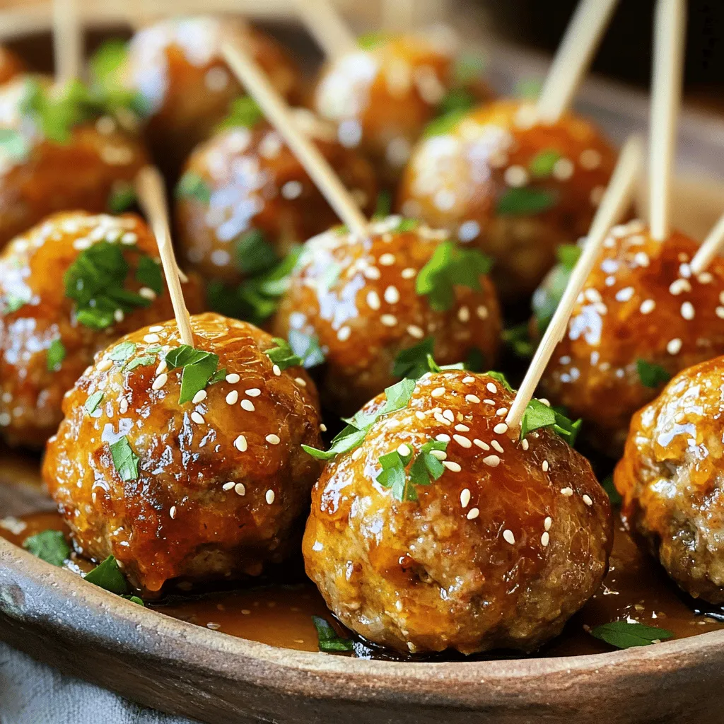 - 1 lb ground beef (or turkey for a lighter option) - 1/2 cup breadcrumbs - 1/4 cup grated Parmesan cheese - 1/4 cup fresh parsley, chopped - 1 clove garlic, minced - 1 egg, lightly beaten - Salt and pepper to taste For the best meatballs, start with quality ground beef or turkey. They provide a rich flavor and juicy texture. Breadcrumbs help bind the meatballs together. I use fresh parsley for a pop of color and fresh taste. Minced garlic adds depth, while the egg holds everything together. Don’t forget to season with salt and pepper for that essential flavor boost. - 1/4 cup honey - 2 tablespoons Sriracha sauce - 1 tablespoon soy sauce (or tamari for gluten-free) - 1 teaspoon sesame oil - 1 teaspoon rice vinegar For the glaze, honey brings sweetness, while Sriracha adds heat. Soy sauce or tamari gives a savory touch. Sesame oil contributes a rich, nutty flavor, and rice vinegar adds a slight tang. This sticky glaze makes the meatballs shine and enhances their taste. Mixing these ingredients creates a balance of sweet, spicy, and savory that is simply irresistible. - Preheat your oven to 400°F (200°C). Line a baking sheet with parchment paper. - In a large mixing bowl, combine 1 lb of ground beef or turkey, 1/2 cup of breadcrumbs, 1/4 cup of grated Parmesan cheese, 1/4 cup of chopped fresh parsley, and 1 clove of minced garlic. - Add 1 lightly beaten egg and season with salt and pepper. Mix until fully blended. - Form the mixture into 1-inch meatballs. Place each meatball on the prepared baking sheet. - Bake the meatballs in the preheated oven for 20 to 25 minutes. They should be golden brown and fully cooked. - To check for doneness, cut one meatball in half. It should no longer be pink inside. - While the meatballs bake, prepare the glaze. In a small saucepan, combine 1/4 cup of honey, 2 tablespoons of Sriracha sauce, 1 tablespoon of soy sauce, 1 teaspoon of sesame oil, and 1 teaspoon of rice vinegar. - Cook the mixture over medium heat for about 2 to 3 minutes. Stir until the sauce thickens slightly. - Once the meatballs are done baking, transfer them to a large bowl. Pour the honey Sriracha glaze over them. - Toss gently to coat each meatball evenly in the glaze. - Return the glazed meatballs to the baking sheet. Broil them for 2 to 3 minutes. This step adds a nice caramelization, but watch closely to avoid burning. To make great meatballs, size matters. Aim for 1-inch balls. This size cooks evenly. If they are too big, they may not cook all the way through. If they are too small, they can dry out. To avoid dryness, do not over-mix the meat. Mix just until combined. Adding breadcrumbs helps keep the meatballs moist. The egg acts as a binder. You can boost flavor by adding spices. Try adding onion powder or smoked paprika. Fresh herbs like basil or thyme can add a nice touch too. To adjust heat, add more Sriracha or less honey. You can also use chili flakes for a different heat. Taste the glaze before using it on the meatballs. For a great presentation, serve the meatballs on a nice platter. Garnish with chopped parsley and sesame seeds. This adds color and texture. Pair these meatballs with steamed rice or a fresh salad. They also work well with toothpicks at parties for easy serving. {{image_2}} You can switch up the meat for these meatballs. Ground chicken or pork works well. They bring a unique taste while keeping the dish light. If you're looking for vegetarian or vegan options, use plant-based meat. There are many brands that mimic meat texture and flavor. You can also make meatballs with lentils or chickpeas for a hearty option. The glaze is where the magic happens! You can adjust the sweetness and heat to fit your taste. If you like it sweeter, add more honey. Want more heat? Just add extra Sriracha. You can also experiment with fruits. Try adding pineapple juice or mango puree for a fruity twist. This can enhance the glaze and make it even more delicious. How you serve these meatballs can change the vibe of your meal. They work great as an appetizer on a platter. Just add toothpicks for easy snacking. If you want to make it a main dish, serve them over rice or pasta. You can also mix them into your favorite sauce for a comforting meal. The options are endless! To keep your Honey Sriracha glazed meatballs fresh, store them in an airtight container. This method locks in moisture and flavor. You should refrigerate the meatballs within two hours after cooking. In the fridge, they last about three to four days. This way, you can enjoy the sweet and spicy goodness later! If you want to save some for later, freezing is a great option. First, let the meatballs cool completely. Next, place them in a single layer on a baking sheet. Freeze them for about an hour until firm. After that, transfer the meatballs to a freezer-safe container or a zip-top bag. They can last up to three months in the freezer. When you want to enjoy them, just thaw in the fridge overnight before reheating. Reheating meatballs can be tricky. You want them warm without drying out. I recommend using the oven. Preheat it to 350°F (175°C) and place the meatballs on a baking sheet. Cover them with foil to keep them moist. Heat for about 15 minutes. If you want, you can also use a microwave. Just add a splash of water to keep the sauce flavorful. Heat in short bursts, stirring in between until warm. Yes, you can make these meatballs ahead. Here’s how: - Prepare the meatball mixture: Combine the ground beef, breadcrumbs, cheese, parsley, garlic, egg, salt, and pepper. - Form the meatballs: Shape them and place them on a baking sheet. - Refrigerate: Cover the sheet with plastic wrap. You can store them for up to 24 hours before cooking. - Freeze for longer storage: Place the meatballs in a freezer-safe bag. They will last for about three months. Just thaw before cooking. To tone down the spice in the glaze, try these tips: - Reduce Sriracha: Use less Sriracha sauce. Start with one tablespoon instead of two. - Ad