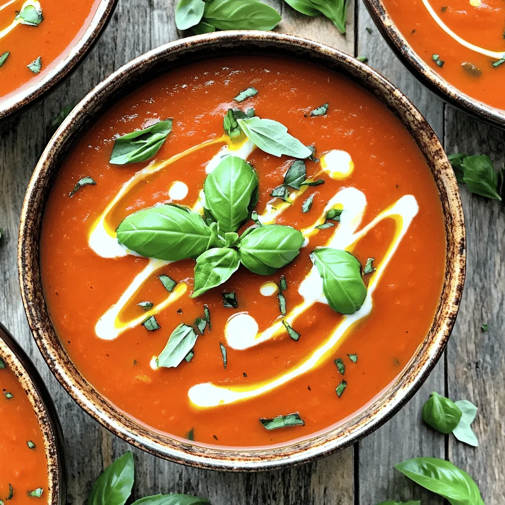 ![- Olive oil - Onion - Garlic - Diced tomatoes - Vegetable broth - Sugar - Dried oregano - Red pepper flakes (optional) - Salt and pepper - Heavy cream or coconut cream - Fresh basil leaves The main ingredients create a rich and tasty soup. Olive oil gives a good base. The onion and garlic add depth and flavor. Diced tomatoes bring sweetness and acidity. Vegetable broth makes it hearty. Sugar balances the acidity of the tomatoes. Dried oregano adds a nice herbal note. Red pepper flakes, if you like heat, can spice it up. Salt and pepper are key for taste. Heavy cream or coconut cream makes it creamy. Fresh basil leaves finish it off with freshness. - Parmesan cheese for topping - Crusty bread for serving - Additional spices (e.g., basil, thyme) For extra joy, consider adding Parmesan cheese on top. It adds a salty and nutty flavor. Pair your soup with crusty bread for dipping. You can also use more spices for a unique twist. Extra basil or thyme can enhance the flavor. These optional ingredients let you customize the soup to your taste. Check out the Full Recipe for all the steps to make this amazing soup! To make this soup, start with the aromatics. Turn on your Instant Pot and choose the 'Sauté' setting. Once it's hot, add 2 tablespoons of olive oil. Next, chop one medium onion and add it to the pot. Cook for about 3 to 4 minutes until the onion is soft and clear. After that, add 3 minced garlic cloves. Sauté for just 1 more minute until it smells great. Now, it’s time for the tomato base. Open two cans of fire-roasted diced tomatoes. Pour these into the pot, with all their juices. Add 1 cup of vegetable broth, 1 teaspoon of sugar, and 1 teaspoon of dried oregano. If you like some heat, sprinkle in ½ teaspoon of red pepper flakes. Add a pinch of salt and pepper, then stir everything together. Next, we pressure cook. Close the lid tightly, making sure the valve is set to sealing. Choose the 'Manual' or 'Pressure Cook' option. Set the timer for 10 minutes. This helps the flavors blend well. After the cooking time is done, let the pressure release naturally for about 5 minutes. Then, turn the valve to venting to release any extra pressure. Carefully open the lid. Now, use an immersion blender to puree the soup until it’s nice and smooth. If you don’t have one, pour the soup into a regular blender, blend it, and return it to the pot. For the last step, stir in 1 cup of heavy cream or coconut cream for a dairy-free twist. Add ¼ cup of chopped fresh basil leaves. Let the soup heat up on 'Sauté' for a few minutes. Taste it and add more salt and pepper if you think it needs it. When serving, ladle the creamy tomato basil soup into bowls. For a pretty touch, add a drizzle of cream on top and sprinkle fresh basil leaves for color. This soup pairs perfectly with crusty bread or a grilled cheese sandwich. Enjoy your delicious meal! To make this soup shine, taste it as you go. Start with a little salt. Add more if needed. Fresh basil adds a lovely taste. Chop it right before adding for the best flavor. You can also add a splash of balsamic vinegar for depth. If you want a little heat, try red pepper flakes. They give the soup a nice kick. Remember, balance is key. One common mistake is overcooking the garlic. It can turn bitter if you cook it too long. Keep an eye on it while sautéing. Also, don’t skip the sugar. It helps balance the acidity of the tomatoes. If you use fresh tomatoes, make sure to peel them first. Lastly, blend the soup well. A smooth texture makes it creamy and delightful. For a richer texture, you can swap heavy cream for coconut cream. This makes it vegan too. You can also add cream cheese for a thick, creamy finish. Another option is to stir in some cashew cream. Cashew cream gives a nice nutty flavor. Don’t forget to taste and adjust the creaminess to your liking. For the full recipe, check out the instructions above. {{image_2}} For a creamy soup without dairy, use coconut cream or almond milk. Both options work well. Coconut cream adds a rich flavor, while almond milk keeps it light. Simply replace the heavy cream with your choice of coconut cream or almond milk in the recipe. Blend it in right after cooking. This way, you still get a smooth and creamy texture. You can easily make this soup heartier by adding protein. Chicken and lentils are great choices. For chicken, cook diced pieces in the Instant Pot before adding the tomatoes. If you prefer lentils, stir in pre-cooked lentils after blending the soup. This will give you a filling meal that's perfect for lunch or dinner. To make this recipe fully plant-based, skip the heavy cream and use coconut cream. Ensure your vegetable broth is also vegan. You can add more vegetables, like spinach or kale, for extra nutrients. This way, you create a delicious, vegan version that everyone can enjoy. To store your creamy tomato basil soup, let it cool first. Use airtight containers. You can keep it in the fridge for up to four days. If you want to save it longer, freeze it. Pour the soup into freezer-safe bags or containers. Leave some space at the top for expansion. This way, your soup stays fresh and tasty. When it's time to enjoy your soup again, choose a gentle method. You can reheat it on the stove over low heat. Stir often to avoid burning. If you use a microwave, heat it in short bursts. Stir in between to keep it even. Add a splash of cream or broth if it seems too thick. In the fridge, your soup stays good for about four days. If frozen, it can last for three to six months. Just be sure to label your containers with dates. This helps keep track of what you have. Enjoy your soup while it's still fresh for the best taste! To spice up your soup, add more red pepper flakes. You can also mix in some hot sauce. Start with a little, then taste and add more. This way, you control the heat. Yes, fresh tomatoes work great! Use about six medium-sized tomatoes. Blanch them first to remove the skins. Chop them up and add 