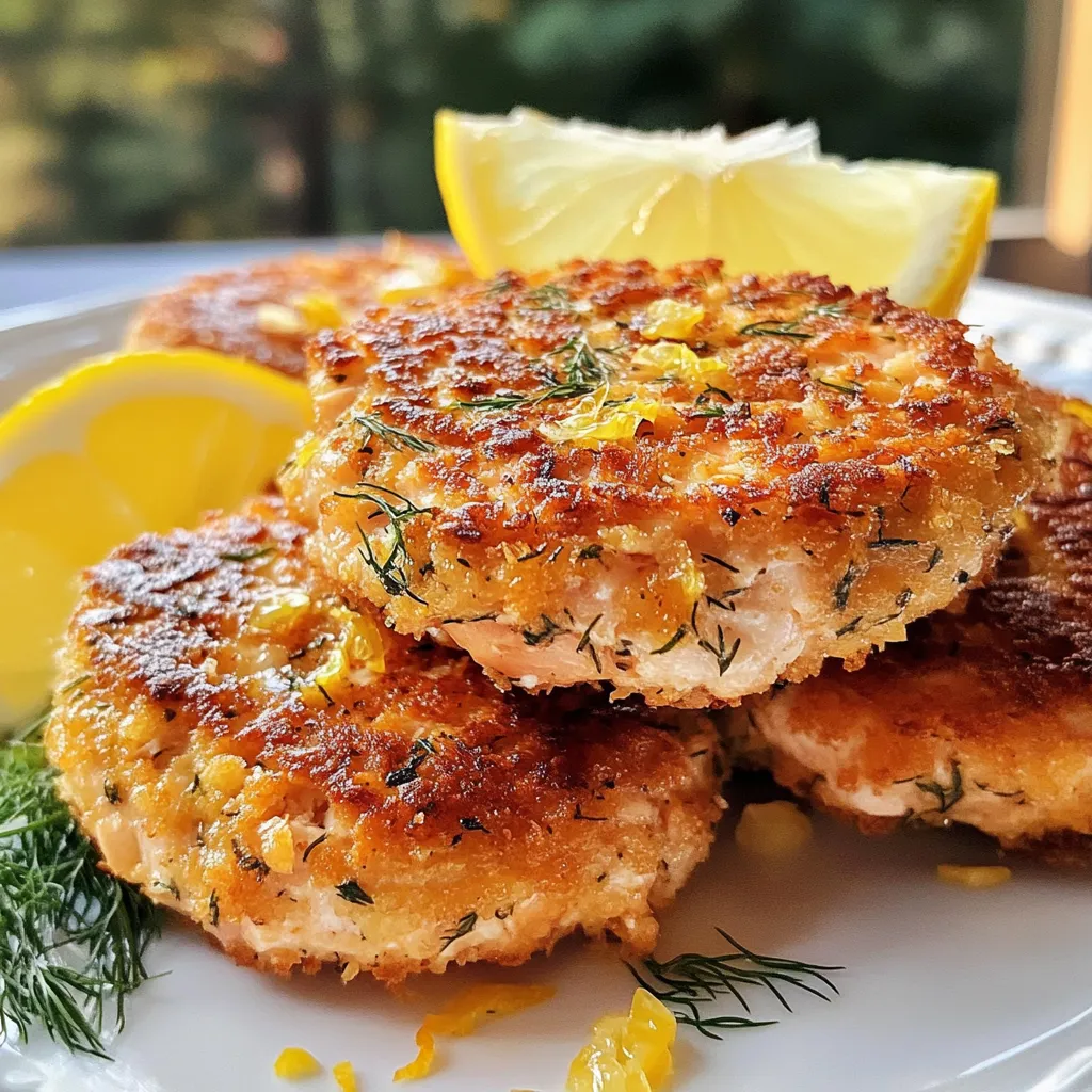 Delicious salmon patties infused with lemon and dill, perfect for a light meal.