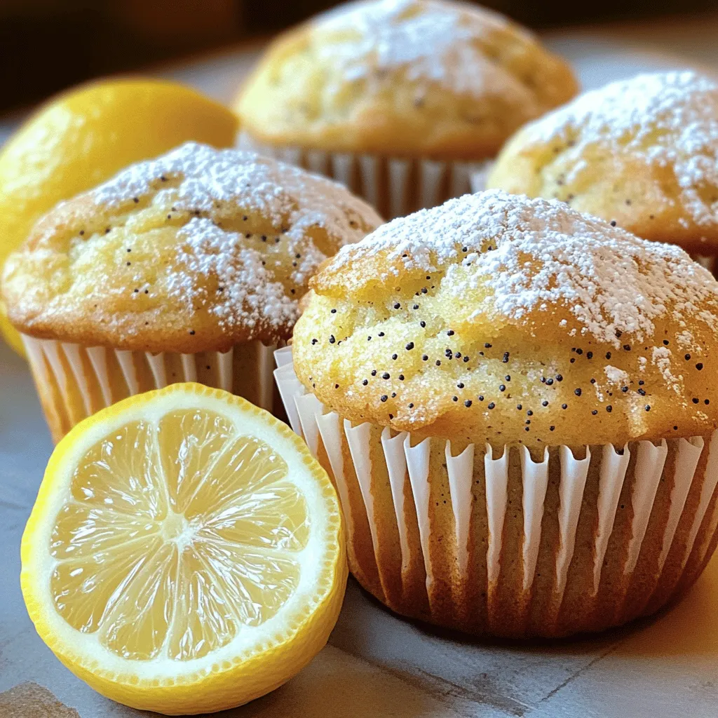 ![To make Lemon Poppy Seed Muffins, gather these simple ingredients: - 1 ½ cups all-purpose flour - 1 tablespoon poppy seeds - 1 teaspoon baking powder - ½ teaspoon baking soda - ¼ teaspoon salt - ¾ cup granulated sugar - 2 large eggs - ½ cup plain yogurt - ¼ cup vegetable oil - 2 tablespoons lemon juice - Zest of 2 lemons Each ingredient plays a key role in making these muffins tasty and delightful. For instance, the flour forms the base, while the baking powder and baking soda help them rise. Poppy seeds add a unique crunch and visual appeal. The sugar sweetens the muffins, balancing the tartness of the lemon juice and zest. The yogurt keeps the muffins moist, giving them a tender crumb. Finally, the lemon juice and zest provide that bright flavor you love. When you gather your ingredients, make sure they are fresh. Fresh lemon juice and zest make a big difference in flavor. Using plain yogurt adds creaminess and richness. This mix of flavors will create a muffin that is both simple and delightful. For the full recipe, just follow the steps after this section to bake these delicious treats! - Preheat the oven and prepare muffin tin Start by preheating your oven to 350°F (175°C). Line a muffin tin with paper liners. This will help the muffins come out easily. - Combine dry ingredients In a medium bowl, mix together 1 ½ cups all-purpose flour, 1 tablespoon poppy seeds, 1 teaspoon baking powder, ½ teaspoon baking soda, and ¼ teaspoon salt. Stir well to blend all the dry ingredients. - Mix wet ingredients In a large bowl, beat ¾ cup granulated sugar and 2 large eggs until light and fluffy. This takes about 2 minutes. Then, add ½ cup plain yogurt, ¼ cup vegetable oil, 2 tablespoons lemon juice, and the zest of 2 lemons. Mix until everything is smooth. - Combine wet and dry ingredients Gradually add the dry mix to the wet mix. Fold gently until just combined. It’s okay if there are a few lumps; don’t overmix or your muffins will be tough. - Fill muffin cups and bake Divide the batter evenly among the muffin cups, filling each about 2/3 full. This helps them rise nicely. Place the muffin tin in the oven and get ready for the delicious smell! - Baking time and temperature Bake the muffins in the preheated oven for 18-20 minutes. Keep an eye on them as they bake. - How to check for doneness To check if they are done, insert a toothpick into the center of a muffin. If it comes out clean, your muffins are ready. If it’s wet, bake a few more minutes. Following these steps, you will create delightful Lemon Poppy Seed Muffins. For the full recipe, check out the information provided. To bake great muffins, avoid overmixing the batter. When you mix too much, muffins can become tough. Stir gently until the dry and wet ingredients just blend. A few lumps are okay. To keep your muffins moist, use yogurt in your recipe. Yogurt adds moisture without making the muffins heavy. Also, make sure not to overbake them. Check for doneness by inserting a toothpick. If it comes out clean, they are ready. You can enhance the flavor of your muffins in fun ways. Add blueberries or raspberries for a fruity twist. You can also mix in some chopped nuts for a crunchy texture. When it comes to lemon juice, always choose fresh. Fresh lemon juice gives a brighter taste. Bottled juice may lack the zing you want. Remember to zest your lemons too; it adds a lovely aroma. For the complete recipe, check the Full Recipe section. {{image_2}} You can change the taste of your lemon poppy seed muffins. Adding fresh blueberries enhances the flavor. The blueberries burst in your mouth, creating a sweet and tart balance. If you want to keep it simple, just add more poppy seeds. This gives a nice crunch and more depth. Another great option is to swap the yogurt for sour cream. Sour cream adds a bit of tang. This change makes the muffins moist and rich. You can easily experiment with these flavors to find your favorite mix. If you need gluten-free muffins, it's easy to make that switch. Use a gluten-free flour blend in place of regular flour. Just make sure to check that your other ingredients are gluten-free too. These muffins will still be tasty and fluffy. For a vegan version, replace the eggs with flax eggs. Mix one tablespoon of ground flaxseed with three tablespoons of water. Let it sit for a few minutes to thicken. You can also use plant-based yogurt instead of regular yogurt. These tweaks keep the muffins delicious while meeting your dietary needs. For the Full Recipe, follow the steps and enjoy your baking adventure! To keep your lemon poppy seed muffins fresh, store them at room temperature. Place the muffins in an airtight container or a zip-top bag. This keeps them moist and tasty. You can also use a paper towel inside the container to absorb any extra moisture. They will stay good for about three days. If you want them to last longer, consider refrigerating them. Just remember, refrigeration can change the texture a bit. If you want to save muffins for later, freezing is a great option. Let them cool completely first. Then wrap each muffin tightly in plastic wrap. After that, place them in a freezer-safe bag. This helps prevent freezer burn. Muffins can stay frozen for up to three months. When you’re ready to eat them, just take one out and let it thaw at room temperature. You can also warm it in the microwave for about 15 seconds. Enjoy the freshness of your lemon poppy seed muffins anytime! For the complete recipe, see [Full Recipe]. How do I prevent muffins from sinking? To keep muffins from sinking, make sure to mix your batter gently. Overmixing can cause them to rise too quickly and then fall. Fill the muffin cups only about two-thirds full. This allows room for them to rise without collapsing. Can I use lemon extract instead of juice? Yes, you can use lemon extract. It will give you a strong lemon flavor. For every tablespoon of lemon juice, use about half a teaspoon of lemon extract. Adjust to tast