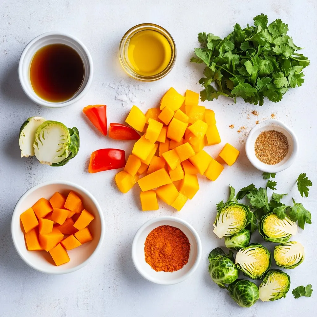 First, gather your fresh veggies. I love using Brussels sprouts, butternut squash, carrots, and red bell pepper. They add great color and taste. Next, preheat your oven to 425°F (220°C). This step is key for perfect roasting. While the oven heats, wash and cut the vegetables. Halve the Brussels sprouts, dice the squash, slice the carrots, and chop the bell pepper.
