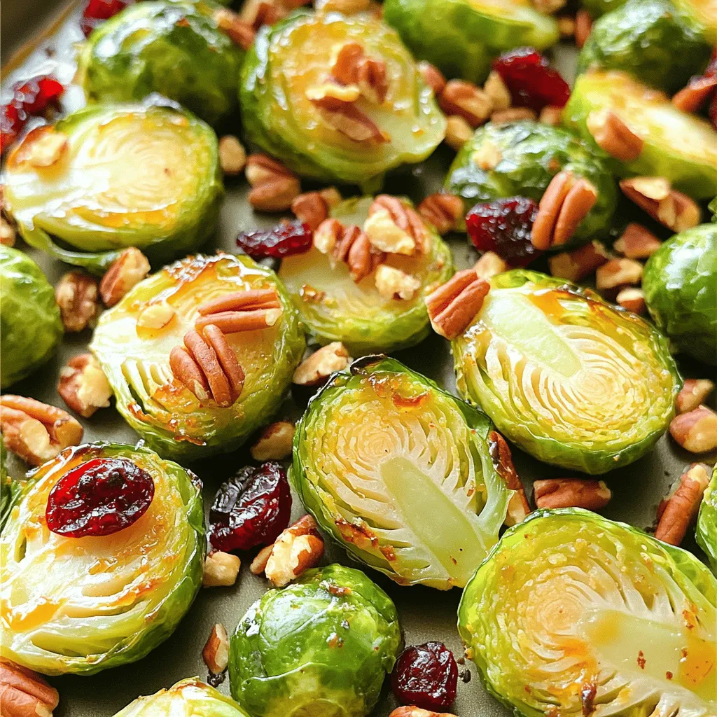 - 1 lb Brussels sprouts, halved - 3 tablespoons olive oil - 1/4 cup pure maple syrup - 1 teaspoon Dijon mustard The main ingredients are simple yet effective. Brussels sprouts bring a nutty flavor. The olive oil adds richness. Maple syrup gives a sweet touch. Dijon mustard adds a slight zing. - 1/2 teaspoon garlic powder - Salt and pepper to taste - 1/4 cup pecans, chopped (optional) - 1/4 cup dried cranberries (optional) - 2 tablespoons balsamic vinegar (optional) For seasoning, garlic powder enhances the taste. Salt and pepper bring balance. If you like, add pecans for crunch. Dried cranberries add sweetness and color. A drizzle of balsamic vinegar at the end can brighten the dish. First, preheat your oven to 400°F (200°C). This temperature gives the Brussels sprouts a nice caramelization. Next, rinse the Brussels sprouts under cold water. Look for any yellow or damaged outer leaves and remove them. Cut each sprout in half. This helps them cook evenly and soak up the glaze. In a large mixing bowl, add the olive oil, maple syrup, Dijon mustard, garlic powder, salt, and pepper. Whisk these ingredients together until they blend well. The maple syrup adds sweetness, while the Dijon gives a nice tang. Now, add the halved Brussels sprouts to the bowl. Toss them gently until each piece is fully coated with the glaze. Spread the glazed Brussels sprouts evenly on a large sheet pan. Make sure they have space between them for even roasting. If you choose, sprinkle chopped pecans over the top for added crunch. Roast the Brussels sprouts in your preheated oven for about 20-25 minutes. Halfway through, stir them to ensure they cook evenly. You want them tender and caramelized, with a lovely golden hue. To make the best Brussels sprouts, start with fresh ones. Fresh sprouts taste better and roast evenly. Look for bright green, firm Brussels sprouts without any brown spots. Next, adjust the seasoning to fit your taste. Some like it salty, while others prefer a touch of sweetness. Taste the glaze before tossing your sprouts. You can always add more salt or pepper if needed. You can spice it up! Try adding a pinch of cayenne for some heat or a sprinkle of smoked paprika for a smoky flavor. A bit of cumin can also add a nice depth. After roasting, consider adding garnishes. Dried cranberries give a sweet touch and brighten the dish. Chopped pecans add crunch and flavor. A drizzle of balsamic vinegar adds tang and richness. Mix it all together for a delightful finish! {{image_2}} You can change the sweet taste by using honey or agave. Both options work well. They give a nice touch to the Brussels sprouts. Honey will add a floral note while agave stays smooth. Just use the same amount as maple syrup. This gives you a new flavor profile while keeping the dish sweet. If you want to switch nuts, try walnuts or almonds. Both provide crunch and flavor. Walnuts have a rich taste, while almonds are mild. You can chop them up, just like pecans. This change makes the dish fun and tasty, giving it a new twist. To make this dish vegan, ensure all ingredients are plant-based. Use maple syrup, olive oil, and fresh produce. For gluten-free needs, check labels on sauces. Most ingredients are safe, but always confirm. This way, everyone can enjoy the dish without worry. After you enjoy your meal, store any leftovers in the fridge. Place the Brussels sprouts in an airtight container. This helps keep them fresh. They will last about 3 to 5 days in the fridge. Make sure to cool them down before sealing the container. This helps avoid extra moisture. When you want to enjoy your leftovers, the best way is to use the oven. Preheat your oven to 350°F (175°C). Spread the Brussels sprouts on a baking sheet. Heat them for about 10 to 15 minutes. This method keeps them crispy and tasty. You can also use a microwave, but the texture may not be as good. If you choose the microwave, heat them in short bursts. This helps prevent them from getting soggy. Yes, you can prepare Maple Glazed Brussels Sprouts ahead of time. Start by washing and cutting the Brussels sprouts. Mix the glaze and toss the sprouts in it. After that, store them in the fridge for up to 24 hours. When you're ready to cook, just spread them on the sheet pan and roast. This saves time and makes meal prep easy. These Brussels sprouts pair well with many dishes. Try serving them with roasted chicken or grilled fish. They also go great with quinoa or rice for a complete meal. For a fun twist, add them to a salad with nuts and cheese. The sweet and savory flavor complements many foods. Yes, this recipe is healthy! Brussels sprouts are low in calories and high in vitamins. They are rich in fiber, which helps digestion. Maple syrup adds sweetness without refined sugar. Olive oil provides healthy fats. If you add pecans and cranberries, they add more nutrients and flavor. Overall, this dish is a tasty and nutritious choice. In this blog post, we explored a tasty recipe for maple glazed Brussels sprouts. You learned about the main ingredients, prep steps, and cooking tips. We also discussed ways to enhance the flavor and make variations for different diets. Lastly, we covered storage options and answered common questions. Enjoy trying this recipe! These sprouts are easy to make and packed with flavor. They are a fun side dish that everyone will love.