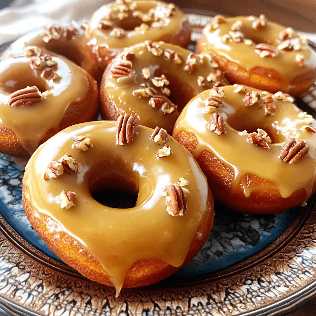 While your donuts are cooling, prepare the glaze. In a small bowl, mix the maple syrup and powdered sugar until smooth. Once the donuts have cooled, dip the tops into the glaze. Let the excess glaze drip off before serving. If you want, sprinkle chopped pecans or walnuts on top while the glaze is still wet. This adds a nice crunch to your delicious donuts. Enjoy the sweet and warm flavors of your maple glazed pumpkin donuts!