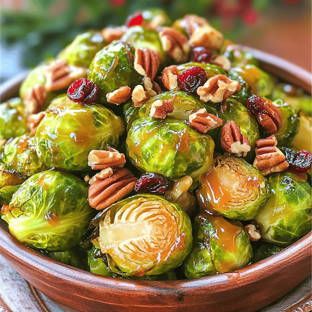Now, add the halved Brussels sprouts to your bowl. Toss them gently in the maple mixture until they’re fully coated. Next, spread them out in a single layer on a baking sheet. This helps them roast evenly. Roast them in the oven for 20 to 25 minutes. Toss them halfway through for even cooking. They should turn golden brown and crispy on the edges. If you want a pop of color and flavor, sprinkle some dried cranberries over them in the last five minutes. After roasting, let them cool for a few minutes before serving. Enjoy this delightful dish!
