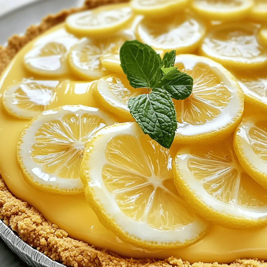 Here is what you need to make a No Bake Lemon Icebox Pie. The fresh flavors and creamy texture will wow everyone. - 1 ½ cups graham cracker crumbs - ½ cup unsalted butter, melted - 1 cup sweetened condensed milk - ½ cup fresh lemon juice (about 2-3 lemons) - Zest of 2 lemons - 1 cup heavy whipping cream - ½ cup powdered sugar - 1 teaspoon vanilla extract - Lemon slices and mint leaves for garnish These ingredients create a pie that is both tangy and sweet. The graham cracker crust gives a nice crunch. The filling is creamy and refreshing. Using fresh lemon juice and zest adds bright flavor. When you whip the cream, it makes the filling light and airy. Make sure to gather all these items before you start. You will love how easy it is to put this pie together. For the full recipe, please check the instructions later in the article. Start by mixing the graham cracker crumbs and melted butter in a medium bowl. You want the crumbs to be fully coated in butter. This step is key for a tasty crust! Next, press the mixture firmly into the bottom and up the sides of a 9-inch pie pan. Make sure it’s even and compact. Now, refrigerate the crust for about 30 minutes. This helps it set and hold its shape. In another bowl, whisk together the sweetened condensed milk, fresh lemon juice, and lemon zest. Keep whisking until the mixture is smooth and well combined. The lemon juice adds a bright, zesty flavor that will shine through in the pie. Now, take a separate bowl and beat the heavy whipping cream, powdered sugar, and vanilla extract with an electric mixer. Mix until you see soft peaks form. This step creates a light, airy cream that balances the dense filling. Gently fold the whipped cream into the lemon mixture. Use a spatula and be careful not to deflate the whipped cream. You want it to stay fluffy so your pie remains light and refreshing. Pour the lemon filling into the prepared graham cracker crust. Use a spatula to smooth out the top. It should look nice and even. Make sure to get every bit of that delicious filling into the crust! Cover the pie with plastic wrap and refrigerate it for at least 4 hours. For the best flavor, let it sit overnight. When you’re ready to serve, slice the pie and enjoy it chilled. Garnish with lemon slices and fresh mint leaves for a beautiful presentation. For the full recipe, check out the details provided earlier! For a great crust, graham cracker crumbs work well. But you can try other options. Use crushed vanilla wafers for a sweeter taste. For a nutty flavor, consider using almond flour mixed with butter. Even chocolate cookie crumbs can add a unique twist. Just make sure to press the crust firmly into the pan. This helps it hold its shape when you slice the pie. Whipping cream needs attention to get the right texture. Start with cold cream for the best results. Use a chilled bowl and beaters. This keeps the cream from warming up too fast. Beat until soft peaks form, which means the cream can hold its shape but is still smooth. Don't overbeat, or it can turn grainy. Gently fold this whipped cream into the lemon mixture. Want to amp up the flavor? Add a bit of lime zest along with the lemon zest. This adds a nice punch to the filling. You could also mix in some fresh herbs like basil for a surprising twist. For a sweeter taste, add a splash of vanilla or a hint of ginger. Each small change can create a whole new experience in your pie. {{image_2}} You can switch things up by using lime or orange juice. Lime adds a zesty kick. It gives the pie a fresh, tangy flavor. Orange juice offers a sweeter taste, perfect for those who prefer a milder zest. You can mix and match these juices. This will create a unique twist on your pie. You might even find a new favorite! If you want to replace sweetened condensed milk, try using coconut milk. This option keeps the pie creamy and rich. You can also use maple syrup or honey for a natural touch. Just remember, these sweeteners can change the flavor a bit. Adjust the amount to taste and keep it balanced. Experimenting with different sweeteners can lead to delicious surprises! For a dairy-free pie, use coconut cream instead of heavy whipping cream. It whips up beautifully and gives a lovely coconut flavor. You can also try almond milk or cashew cream as alternatives. These options allow everyone to enjoy this refreshing dessert. Just make sure to check the consistency and adjust as needed. This way, you keep the pie creamy and delicious! For the full recipe, check [Full Recipe]. Enjoy creating your own variations! To keep your No Bake Lemon Icebox Pie fresh, store leftovers in the fridge. Use a tight lid or wrap it well with plastic wrap. This helps keep the pie's creamy filling and crust from drying out. Make sure to refrigerate it right after serving. If you leave it out, the pie can spoil quickly. You can freeze this pie if you want to save it for later. First, let the pie chill in the fridge for at least four hours. Then, cover it with plastic wrap or aluminum foil. Place it in the freezer. When you're ready to eat it, thaw the pie in the fridge overnight. This way, it stays creamy and tasty. In the fridge, the pie lasts for about three to four days. After that, it may lose its flavor and texture. To enjoy it at its best, make sure to eat it within this time frame. If you freeze it, you can keep it for up to two months without losing quality. For the full recipe, check out the earlier sections. Yes, you can make No Bake Lemon Icebox Pie ahead of time. This pie tastes even better after chilling overnight. It allows the flavors to meld together nicely. Just cover it well with plastic wrap and keep it in the fridge. This makes it a perfect dessert for parties or gatherings. The pie needs at least four hours to set in the fridge. For the best results, I recommend chilling it overnight. This time helps the filling firm up and creates a nice texture. After it’s set, you can slice and serve it cold. While fresh lemon juic