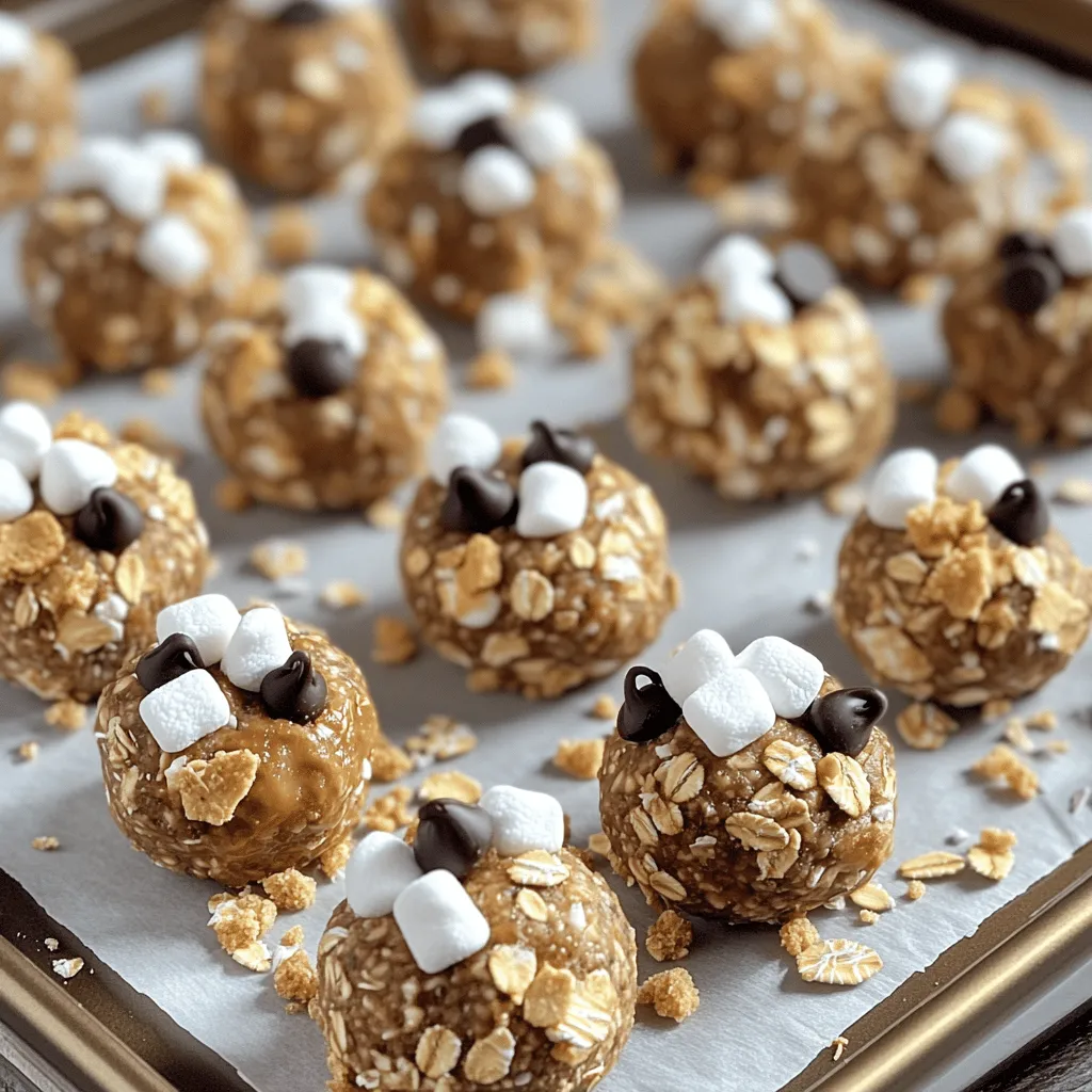 - 1 cup rolled oats - 1/2 cup almond butter (or any nut butter) - 1/4 cup honey or maple syrup - 1/2 cup mini marshmallows - 1/4 cup dark chocolate chips - 1/4 cup crushed graham crackers - 1 teaspoon vanilla extract - Pinch of salt To create the best no-bake s'mores energy balls, you need simple and tasty ingredients. Each one adds a special touch to the flavor and texture. The rolled oats give a chewy base, while the nut butter adds creaminess. Honey or maple syrup brings sweetness, making the balls sticky and delightful. Mini marshmallows and dark chocolate chips deliver that classic s'mores taste. The crushed graham crackers add crunch, and a pinch of salt rounds it all out. - Different nut butters (e.g., peanut butter, cashew butter) - Add-ins like shredded coconut or dried fruit - Substitutes for honey (e.g., agave syrup) You can enjoy this recipe in many ways. Try different nut butters for a unique taste. Shredded coconut or dried fruit can add fun flavors and textures. If you prefer, you can swap honey for agave syrup. These small changes let you customize your energy balls for your taste. Want to try a new twist? The options are endless! For the full recipe, check out the [Full Recipe]. 1. In a large mixing bowl, combine the rolled oats, almond butter, honey, and vanilla extract. Mix until everything sticks well together. 2. Next, add the mini marshmallows, dark chocolate chips, and crushed graham crackers. Gently fold in these ingredients. Be careful not to break the marshmallows or chocolate. 1. Now, scoop out about a tablespoon of the mixture. Roll it into a ball using your hands. 2. Place each ball on a baking sheet lined with parchment paper. Keep going until you use all the mixture. 1. Put the baking sheet in the freezer for about 20 to 30 minutes. This helps the energy balls firm up nicely. 2. After chilling, transfer the energy balls to a sealable container. You can store them in the fridge for up to one week. For the full recipe, check the section above. Enjoy making these tasty snacks! To make the best energy balls, focus on the right mix. You want a sticky but not wet texture. Use a sturdy nut butter like almond or peanut butter. If the mix feels too dry, add a bit more honey or syrup. This helps bind everything well. When mixing ingredients, I recommend using a large bowl. This gives you room to stir. Mix the oats, nut butter, honey, and vanilla first. Make sure they stick together. Then, gently fold in the marshmallows and chocolate chips. This keeps them whole and fluffy. To keep your energy balls fresh, store them in a sealed container. Refrigeration works best for short-term storage. They stay tasty for about a week. If you want to keep them longer, freezing is great. Just pop them in a freezer bag and pull out what you need. They can last up to three months in the freezer. These energy balls are fun to serve in many ways. You can stack them on a plate for a snack or dessert. Try adding a drizzle of extra chocolate on top for a treat. They pair well with fresh fruit like bananas or strawberries. You can even add them to smoothies for extra energy. Give them a try! {{image_2}} You can mix up the flavors of your no bake s'mores energy balls easily. Try using white or milk chocolate chips instead of dark chocolate. This simple swap changes the taste and makes it sweeter. You can also add spices like cinnamon or nutmeg. These spices add warmth and depth to each bite. For a healthier version, cut down on sugar. You can use sugar substitutes like stevia or monk fruit. This choice keeps sweetness without extra calories. You can also use gluten-free graham crackers. This step makes the energy balls safe for those with gluten issues. Themed versions can make your snacks fun! For holidays, add pumpkin spice during the fall. It brings a festive feel to your treats. In summer, you can mix in seasonal fruits like berries. Berries add a fresh taste and vibrant color, making them even more enjoyable. To keep your no-bake s'mores energy balls fresh, use airtight containers. Glass jars or plastic containers work great. Store them in the fridge to maintain their chewy texture. Avoid leaving them at room temperature for long, as heat can make them soft. No-bake s'mores energy balls last about one week in the fridge. Check for signs of spoilage. If they smell funny or look dry, it's time to toss them out. Fresh energy balls should smell sweet and look moist. You can freeze your energy balls for longer storage. Place them in a single layer on a baking sheet to freeze for a few hours. Once frozen, transfer them to a freezer-safe bag or container. This helps to prevent them from sticking together. When you want to eat them, take out the number you need. Let them thaw in the fridge overnight. You can also enjoy them straight from the freezer for a cool treat! Yes, you can easily make these energy balls vegan. Just swap honey for maple syrup. Choose a nut butter that fits your diet. Many nut butters are naturally vegan. This way, your tasty snack stays animal-friendly. To make the mix less sticky, use less almond butter. You can also chill the mixture for a few minutes. This makes it firmer and easier to handle. You may also dust your hands with a little cocoa powder or oats to help. If you can't use almond butter, try peanut butter or sunflower seed butter. Both options work well and taste great. Just make sure your substitute has a similar texture. This helps keep the energy balls together. Each serving has about 2-3 energy balls. It depends on your portion size. You can adjust based on your hunger or nutritional needs. Each ball is packed with good energy, so they fill you up. Yes, you can add protein powder to boost nutrition. Just add a scoop when mixing the ingredients. This helps make your snack even healthier. It can also change the texture a bit, so adjust your wet ingredients if needed. For the full recipe, check the recipe section. In this post, I shared simple steps for makin