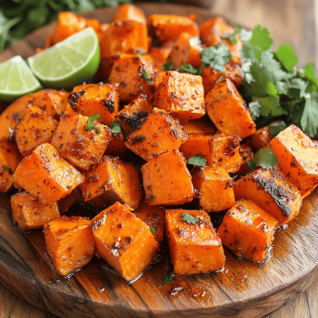 Roasted sweet potatoes taste great on their own but pair well with many dishes. Serve them next to grilled chicken or fish for a balanced meal. They also shine in salads or wraps. Adding lime wedges gives a zesty finish. For a fun touch, sprinkle fresh cilantro on top for color and flavor.