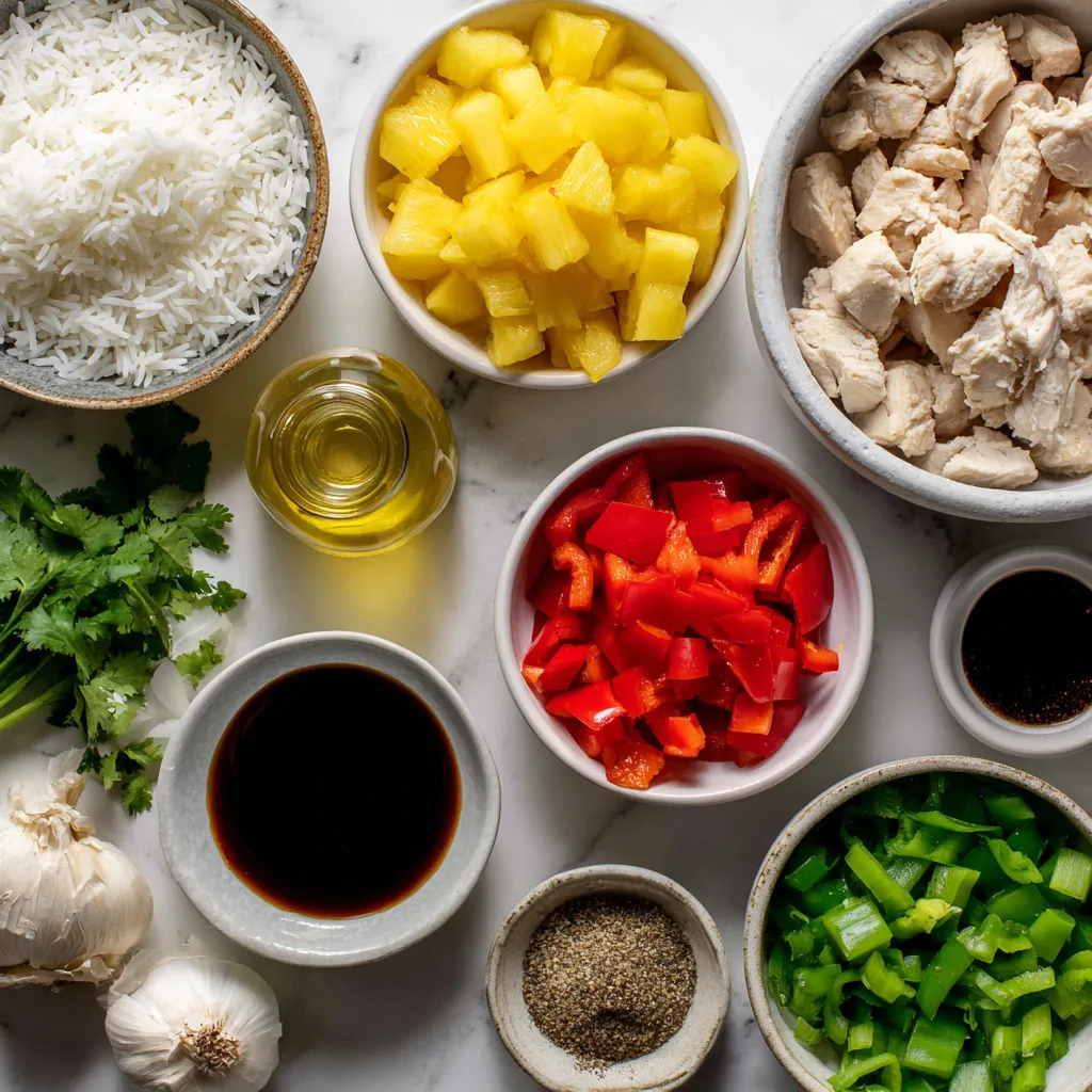 Main ingredients for Pineapple Chicken and Rice