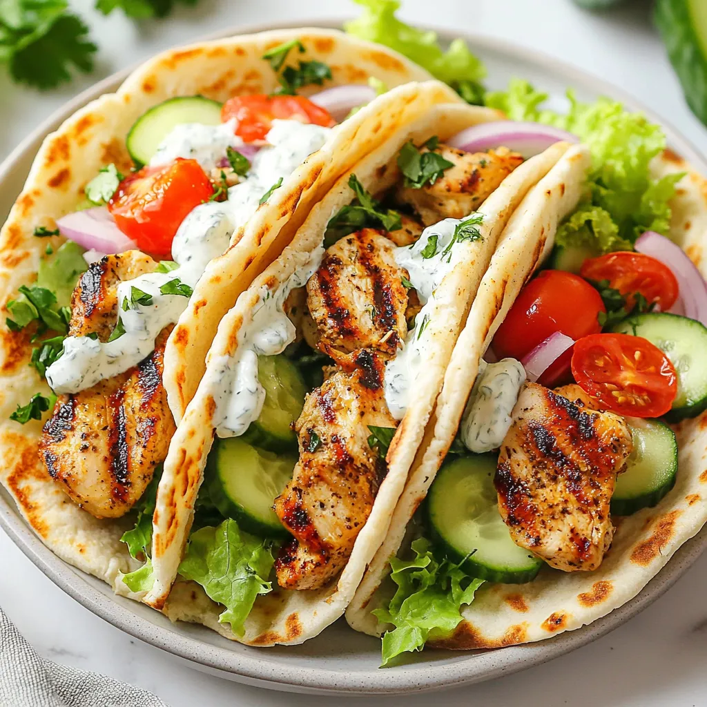A healthy and delicious chicken gyro recipe packed with protein and fresh vegetables.
