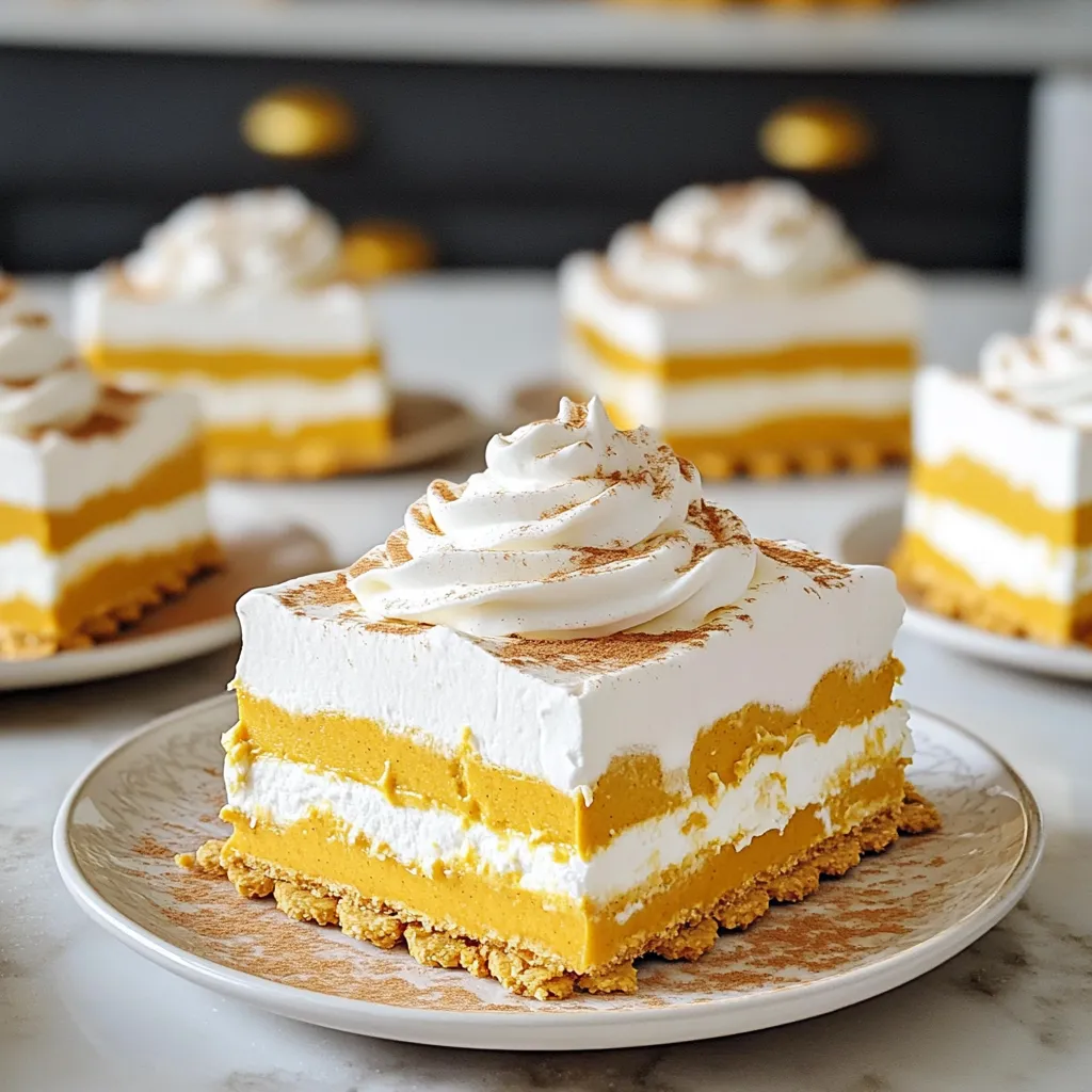 For a beautiful look, slice the icebox cake into neat squares. Use a sharp knife for clean cuts. Serve each piece on a plate with a dollop of whipped cream on top. Sprinkle a little ground cinnamon for color and flavor. Adding a tiny piece of pumpkin pie spice makes it look fancy. You can also add festive decorations like edible leaves or small pumpkins for fun. Enjoy the smiles when you serve this dish!