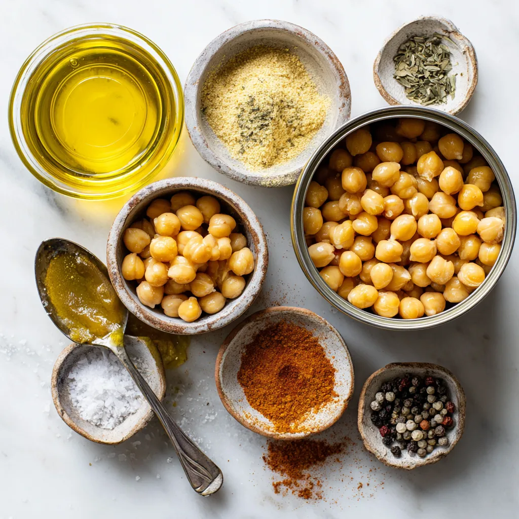 Make sure you rinse the chickpeas well. This step removes excess sodium and helps them get extra crispy. Enjoy gathering these ingredients! They will come together to make a snack that is both healthy and delicious.