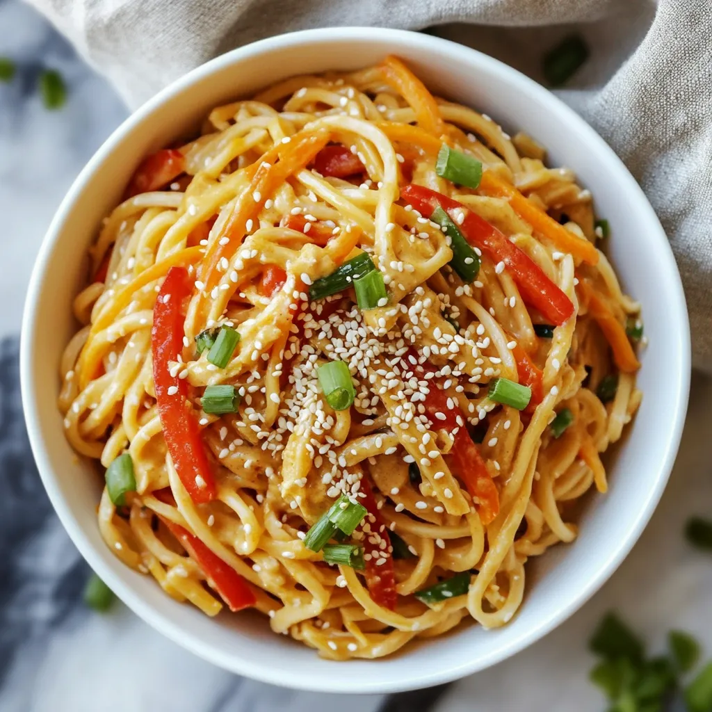 A delicious and easy noodle dish with a creamy peanut sauce, perfect for a quick meal.