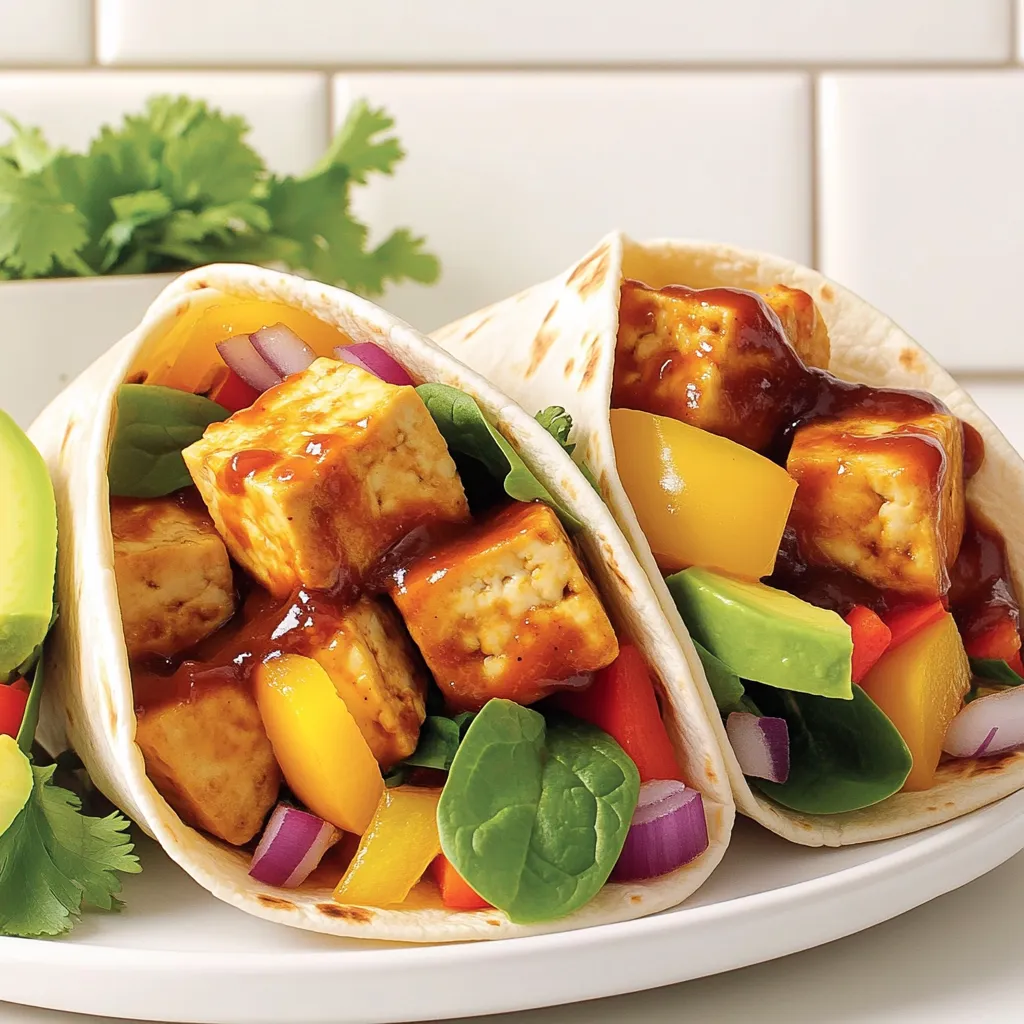 - 1 block firm tofu, pressed and drained - 1 cup smoky BBQ sauce (store-bought or homemade) - 1 red bell pepper, sliced - 1 yellow bell pepper, sliced - 1 red onion, sliced - 2 tablespoons olive oil - 1 teaspoon smoked paprika - Salt and pepper to taste - 4 large whole wheat tortillas - 1 cup fresh spinach or mixed greens The main ingredients create a rich and tasty meal. Firm tofu holds the flavors well. Smoky BBQ sauce adds depth and sweetness. Fresh veggies bring color and crunch to each bite. - Sliced avocados - Fresh cilantro These optional garnishes add creaminess and freshness. Avocados are rich and smooth. Cilantro gives a bright touch to the wraps. - Baking sheet - Parchment paper - Mixing bowl - Knife and cutting board - Skillet or microwave Having the right tools makes cooking easier. A baking sheet lined with parchment helps with cleanup. A sharp knife and cutting board are key for slicing veggies and tofu. Start by preheating your oven to 425°F (220°C). This step is key for getting that perfect crispy tofu. While the oven heats up, line a baking sheet with parchment paper. This makes for easy cleanup later. Now, take a block of firm tofu, press it, and drain it well. Cut the tofu into bite-sized cubes and place them in a big mixing bowl. Next, pour in ½ cup of smoky BBQ sauce and 2 tablespoons of olive oil. Add 1 teaspoon of smoked paprika. Season it all with salt and pepper to taste. Toss the tofu until it gets a good coat of sauce. Spread the tofu cubes on one side of the baking sheet. On the other side, arrange sliced red and yellow bell peppers along with sliced red onion. Drizzle these veggies with olive oil and sprinkle with salt and pepper. Now, bake it all in your preheated oven for about 25 to 30 minutes. Halfway through, stir the tofu and veggies so they cook evenly. You want the tofu golden and the veggies tender. While your tofu and veggies bake, warm up 4 large whole wheat tortillas. You can do this in a dry skillet or microwave for a few seconds. Once the tofu and veggies are done, take them out of the oven and drizzle the rest of the BBQ sauce over them. Mix gently. To assemble each wrap, place a handful of fresh spinach or mixed greens in the middle of a tortilla. Add a good scoop of the smoky BBQ tofu mixture on top. For a fun twist, include sliced avocados and sprinkle with cilantro if you like. Roll up the tortilla tightly, folding in the sides as you go. Finally, slice the wraps in half diagonally and serve them warm. Enjoy your meal! Pressing tofu is key for this recipe. Start with firm tofu. Wrap the block in a clean towel. Place a cutting board on top. Add a heavy object, like a pot. Let it sit for at least 15 minutes. This removes excess water. Drier tofu absorbs more flavor and becomes crispier when cooked. You can swap ingredients based on what you have. Try using tempeh instead of tofu for a nuttier taste. If you don’t have smoky BBQ sauce, try teriyaki or sweet chili sauce. Bell peppers can be replaced with zucchini or mushrooms. Use any greens you prefer; arugula or kale also work great. You can make this dish even better with add-ins and seasonings. Consider adding corn or black beans for extra texture. You might want to add jalapeños for spice. Fresh herbs like basil or dill can elevate the flavors. Try including different cheeses for creaminess. Mix in some lime juice for a fresh zing! {{image_2}} Tofu is a great choice for these wraps, but you can mix it up. Tempeh gives a nutty flavor and firm texture. You can also use chickpeas for a hearty bite. If you're not vegan, shredded chicken or pork can work well too. Just adjust the cooking time to ensure everything cooks evenly. The bell peppers and onions are tasty, but feel free to switch things up! Zucchini or mushrooms add a nice twist. You can also try corn for a sweet crunch. Carrots or broccoli are great for added color and nutrition. Get creative with what you have. While a smoky BBQ sauce is delicious, you can experiment! Try a spicy sauce for heat or a sweet sauce for a different flavor. You can even make your own BBQ sauce using ketchup, vinegar, and spices. Mixing different sauces can change the whole taste of your wraps. To keep your smoky BBQ tofu wraps fresh, store them in an airtight container. Make sure they cool down to room temperature before sealing. This helps avoid moisture build-up. Place a paper towel between layers if you stack them. This will help absorb any extra moisture. They can stay fresh in the fridge for up to three days. When you're ready to enjoy your leftovers, reheat them gently. You can use a skillet over low heat. This method keeps the wraps from getting soggy. Heat for about 5-7 minutes, flipping halfway through. You can also use a microwave. Heat them for 30 seconds to 1 minute, checking often. If you want to freeze your wraps, first wrap each one in plastic wrap. Then place them in a freezer bag. Remove as much air as possible before sealing. They can stay in the freezer for up to three months. To thaw, move them to the fridge overnight. Reheat as mentioned above when you're ready to eat. Yes, this recipe is vegan. Tofu is a great source of protein. It contains no animal products. The smoky BBQ sauce can also be vegan. Just check the label. Some sauces use honey or other animal-based ingredients. You can make your own BBQ sauce at home to be sure. Several sides go well with these wraps. Here are some tasty options: - Sweet potato fries - Coleslaw - Corn on the cob - A simple green salad - Roasted vegetables These sides will add more flavor and texture to your meal. Leftovers can last about 3 to 4 days in the fridge. Store them in an airtight container for best results. If you want to keep them longer, consider freezing them. Make sure to wrap them well to avoid freezer burn. In this article, we explored the key ingredients, step-by-step instructions, and helpful tips for making smoky BBQ tofu wraps. You learned how to press tofu, choose the right ve