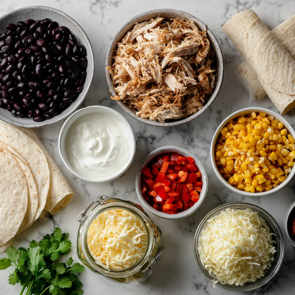 First, gather your ingredients. You need cooked chicken, black beans, corn, and spices. I like to use a large skillet. Heat a little olive oil over medium heat. Add the chopped onion and diced bell pepper. Cook them for about five minutes until they are soft. Then, mix in the shredded chicken, black beans, corn, cumin, and chili powder. Season with salt and pepper. Stir everything together and cook for three to four more minutes. Make sure it heats up nicely.
