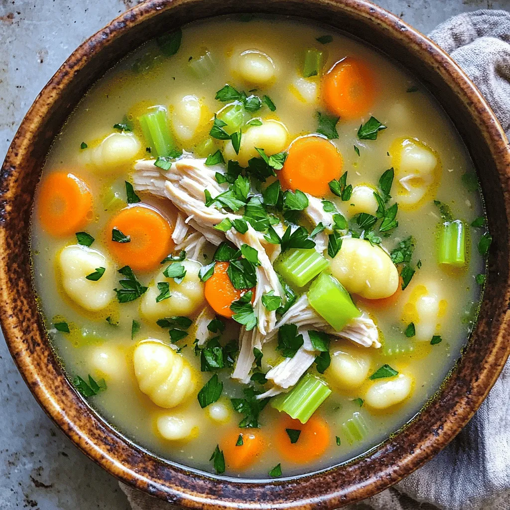 Serve your soup hot, and for a nice touch, garnish it with chopped fresh parsley. Enjoy your cozy bowl of chicken gnocchi soup!