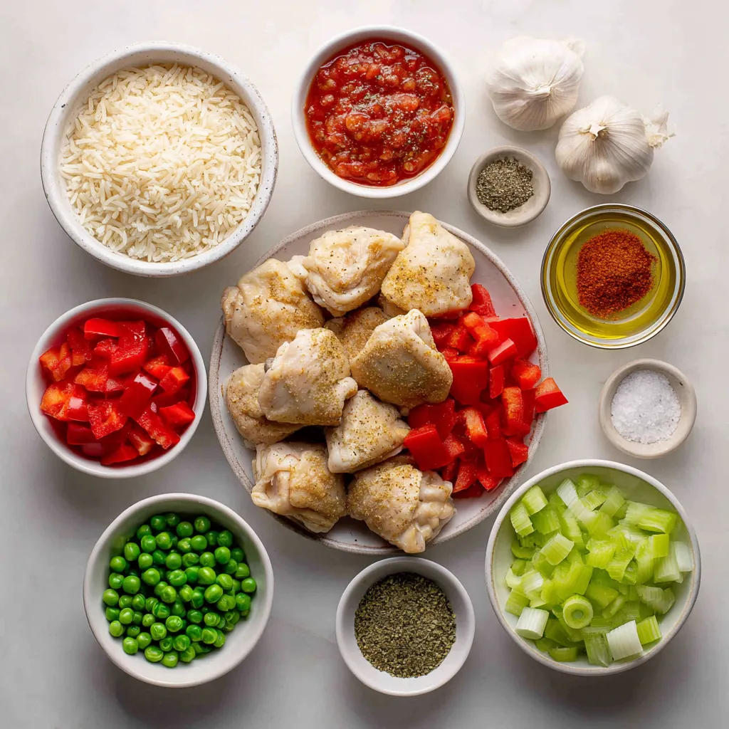 A flavorful and hearty dish made with chicken, rice, and vegetables, cooked slowly for a delicious meal.