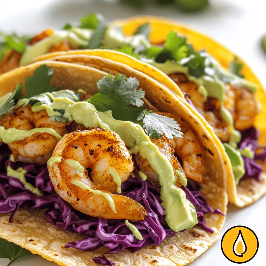 ![- 1 lb large shrimp, peeled and deveined - 8 small corn tortillas - 1 cup shredded red cabbage - 1 avocado, sliced - 1 tablespoon olive oil - 1 teaspoon smoked paprika - 1 teaspoon cumin - 1 teaspoon chili powder - 1/2 teaspoon cayenne pepper - Salt and pepper, to taste - 1/2 cup sour cream - 2 tablespoons mayonnaise - Zest and juice of 1 lime - 1 small garlic clove, minced - Salt, to taste When I create spicy shrimp tacos, I focus on fresh and vibrant ingredients. The shrimp is key. Choose large, fresh shrimp for the best taste. Peel and devein them to get rid of any grit. You want them to shine in your dish. Corn tortillas are perfect for these tacos. They add a soft texture and a bit of sweetness. Warm them up before serving. This way, they become more flexible and easy to fill. Shredded red cabbage adds crunch and color. It also gives a nice balance to the spicy shrimp. Slicing an avocado provides creaminess. It cools down the heat from the spices. For the spices, olive oil helps the shrimp cook evenly. Smoked paprika adds depth. Cumin and chili powder bring warmth. A little cayenne gives it a kick. Salt and pepper enhance all these flavors. The lime crema is a game-changer. Sour cream and mayonnaise create a rich base. The lime zest and juice brighten the dish. Minced garlic adds an extra layer of flavor. A pinch of salt rounds it all out. Check out the [Full Recipe] for details on how to combine these ingredients into a delicious meal. - Mix sour cream, mayonnaise, lime zest, and juice in a small bowl. - Add minced garlic and salt to the mixture. - Chill the crema in the refrigerator for at least 15 minutes. The lime crema gives the tacos a creamy, tangy kick. This sauce balances the heat from the shrimp. By chilling it, you enhance the flavors and make it refreshing. - In a large bowl, combine olive oil, smoked paprika, cumin, chili powder, cayenne pepper, salt, and pepper. - Toss the shrimp until they are evenly coated in the spice mix. Proper seasoning is key. The spices create a flavorful crust when cooked. Make sure to coat the shrimp well for the best taste. - Heat a non-stick skillet over medium-high heat. - Add the seasoned shrimp and cook for about 3-4 minutes until they turn pink. Cooking shrimp quickly keeps them tender. Stir occasionally to ensure even cooking. Watch them closely; overcooked shrimp can be tough. - Heat corn tortillas in a skillet or over flame. - Cook until they are pliable, about 30 seconds on each side. Warming the tortillas prevents them from cracking. This step adds a nice, toasty flavor and improves the taco experience. - Layer cooked shrimp, shredded red cabbage, and avocado on each tortilla. - Drizzle the chilled lime crema on top. Assembling tacos is fun! Feel free to pile on the toppings to suit your taste. The crunch from the cabbage complements the shrimp perfectly. - Top each taco with fresh cilantro. - Serve immediately for the best flavor. Fresh cilantro adds a burst of flavor. Serve these tacos right away to enjoy the warm shrimp and cool crema together. For the full recipe, refer to the earlier sections. - Avoid overcooking for tenderness. Cook shrimp until they turn pink. This usually takes about 3-4 minutes. If you cook them too long, they become tough. - Use fresh shrimp for better flavor. Fresh shrimp adds a sweet taste. Look for shrimp that smells clean and ocean-like. - Adjust lime for extra zing. If you love tang, add more lime juice. This makes the crema bright and fresh. - Let it chill for enhanced flavor. Cooling the lime crema for at least 30 minutes helps the flavors blend. It becomes creamy and delicious. - Use warmed tortillas for better flexibility. Heating tortillas makes them soft and easy to fold. Warm them for about 30 seconds on each side in a skillet. - Customize toppings to taste. You can add toppings like jalapeños, salsa, or cheese. Make it your own! By following these tips, your spicy shrimp tacos will be full of flavor and fun. Enjoy every bite! For the complete recipe, check out the [Full Recipe]. {{image_2}} You can switch up the shrimp in this recipe. Try chicken or fish instead. Both options work well with the spices. If you want a vegetarian dish, consider using tofu. Tofu absorbs flavors nicely and adds protein. Taco shells don’t have to be corn tortillas. For a low-carb option, use lettuce wraps. They add crunch and freshness. You can also try flour tortillas for a different texture. Flour tortillas are soft and chewy, making them a tasty base. Want more heat? Add sliced jalapeños to your tacos. They pack a spicy punch. You can also include mango salsa or pico de gallo. Both add sweetness and freshness to balance the spice. Explore these variations to make your spicy shrimp tacos even more exciting. For the full recipe, check out the complete guide! - Separate shrimp from tortillas to prevent sogginess. - Keep toppings like cabbage and avocado in airtight containers. When you have leftover tacos, storing them right helps keep them tasty. If you mix everything together, the tortillas can get wet. That’s not fun! Instead, store shrimp, tortillas, and toppings apart. This way, your next meal stays fresh and crunchy. - Freeze cooked shrimp for up to 3 months. - Wrap tortillas in foil before freezing. If you want to save some for later, freezing works great. Just place the cooked shrimp in a freezer-safe bag. Push out the air, seal it tight, and label it. You can keep it for up to three months! For the tortillas, wrap them in foil to protect them from freezer burn. This keeps them soft and ready to use when you need them. - Reheat shrimp in a skillet over medium heat. - Warm tortillas lightly before serving. When you’re ready to eat, make sure to reheat shrimp in a skillet. This keeps them juicy. Just warm them up on medium heat for a few minutes. For the tortillas, give them a quick warm-up in a skillet or over a gas flame. This makes them soft and easy to fold. Enjoy your tasty spicy shrimp tacos w