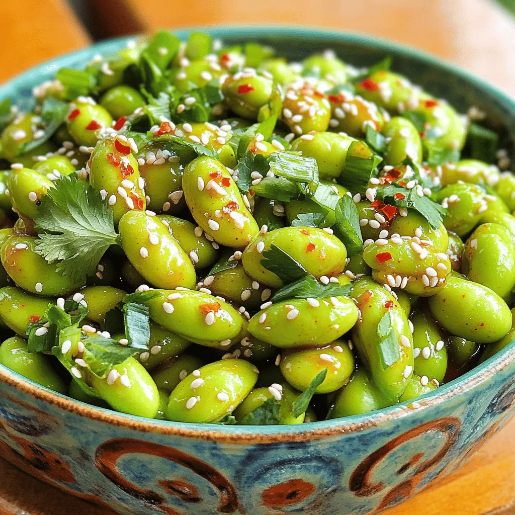 To make Sweet Chili Garlic Edamame, you need simple and fresh ingredients. Here is the list of what you will need: - 2 cups shelled edamame (fresh or frozen) - 3 tablespoons sweet chili sauce - 2 cloves garlic, minced - 1 tablespoon soy sauce - 1 teaspoon sesame oil - 1 teaspoon rice vinegar - 1 tablespoon olive oil - 1/2 teaspoon red pepper flakes (adjust for spice preference) - 1 tablespoon sesame seeds (for garnish) - Fresh cilantro or green onions for garnish This recipe uses edamame, a protein-rich snack. You can use fresh or frozen edamame. If using frozen, just cook it according to package instructions. The sweet chili sauce gives a nice flavor, while garlic adds depth. Soy sauce and sesame oil bring umami and richness. Red pepper flakes add the right amount of heat. Garnishing with sesame seeds and fresh herbs makes your dish pop! Each ingredient works together to create a balanced and tasty treat. For complete preparation steps, check the Full Recipe. First, take your frozen edamame. Cook it according to the package instructions. This usually means boiling or steaming for about 5 minutes. They should be tender when done. After cooking, drain the edamame and set it aside. This step is easy and quick! Now, let’s make the garlic sauce. In a small bowl, mix together sweet chili sauce, minced garlic, soy sauce, sesame oil, rice vinegar, and red pepper flakes. Stir until everything is well combined. This sauce adds flavor and a little heat to your dish. Next, heat olive oil in a large skillet over medium heat. Add your cooked edamame to the skillet. Sauté them for 2-3 minutes until they are heated through and slightly crispy. This adds a nice texture! Then, pour the garlic sauce over the edamame. Stir well to coat all the edamame. Cook for another 2-3 minutes, stirring occasionally. You want the sauce to thicken slightly. Once done, remove the skillet from heat. Transfer the edamame to a serving bowl. Sprinkle sesame seeds on top. You can also add fresh cilantro or sliced green onions for color and taste. Enjoy your flavorful Sweet Chili Garlic Edamame! For the full recipe, check out the earlier sections. You can cook edamame in three ways: boiling, steaming, or microwaving. - Boiling: This method is quick. Bring water to a boil, add edamame, and cook for 3-5 minutes. Drain and set aside. - Steaming: Steaming keeps more flavor. Place edamame in a steamer basket over boiling water. Steam for about 5 minutes. - Microwaving: This is the fastest way. Place edamame in a bowl with a bit of water. Cover and microwave for 3-4 minutes. Each method works well, so choose the one you like best. To adjust the heat in your dish, use red pepper flakes. You can increase or decrease the amount based on your taste. - For mild spice, use 1/4 teaspoon. - For medium heat, stick to 1/2 teaspoon. - For a fiery kick, add 1 teaspoon or more. Start small, and taste as you go to find your perfect balance. Adding extra ingredients can boost the taste of your edamame. Here are some ideas: - Lime Juice: A squeeze of lime adds a fresh zing. - Ginger: Fresh ginger gives a warm, spicy note. - Green Onions: Chopped green onions add crunch and color. Feel free to mix and match these flavors to make your dish even more exciting. For the complete guide, check out the Full Recipe. {{image_2}} You can switch up the sauce for your Sweet Chili Garlic Edamame. Try using teriyaki sauce for a sweet and savory taste. Hoisin sauce adds a rich flavor that pairs well with edamame. You can even mix these sauces together for a unique twist. Just make sure to keep the balance of flavors in mind. Adding veggies can make your edamame even healthier. Bell peppers add a nice crunch and bright color. Snap peas bring a sweet taste and extra fiber. You can sauté these with the edamame for a quick, nutritious boost. Just chop them into small pieces and add them to the skillet during cooking. If you're gluten-free, you can use tamari instead of regular soy sauce. This swap keeps the flavor while avoiding gluten. You can also check the sweet chili sauce for gluten-free options. Always read the labels to ensure everything fits your dietary needs. To store leftover Sweet Chili Garlic Edamame, place it in an airtight container. Make sure it cools first to avoid steam build-up. Store it in the fridge for up to three days. When you’re ready to eat, check for freshness before reheating. This way, you keep that great flavor. If you want to save edamame for later, freezing is a great choice. First, cool the cooked edamame completely. Then, spread it out on a baking sheet. Freeze it for about an hour. After that, transfer the edamame to a freezer bag. Remove as much air as possible before sealing. You can keep it in the freezer for up to three months. When reheating your edamame, use a skillet for the best results. Heat it on medium until warm, stirring often. This helps keep the texture nice and prevents it from becoming mushy. You can also microwave it, but be careful not to overcook it. Enjoy your Sweet Chili Garlic Edamame warm, just like when you first made it! For the complete recipe, check the Full Recipe section. Edamame is a great source of protein. It has around 17 grams of protein per cup. This makes it a smart choice for vegetarians and vegans. Edamame also contains fiber, which aids digestion. Each cup has about 8 grams of fiber. It is rich in vitamins and minerals too. You get vitamins A, C, and K, along with iron and calcium. Edamame is low in calories, making it a healthy snack option. This green bean is also high in antioxidants, which help fight free radicals. Overall, edamame packs a nutritious punch that benefits your health. Yes, you can make Sweet Chili Garlic Edamame ahead of time. It’s a great dish for meal prep. Cook the edamame and sauce as directed. After cooking, let it cool down completely. Store it in an airtight container in the fridge. It will stay fresh for up to three days. When you’re ready to eat, simply reh