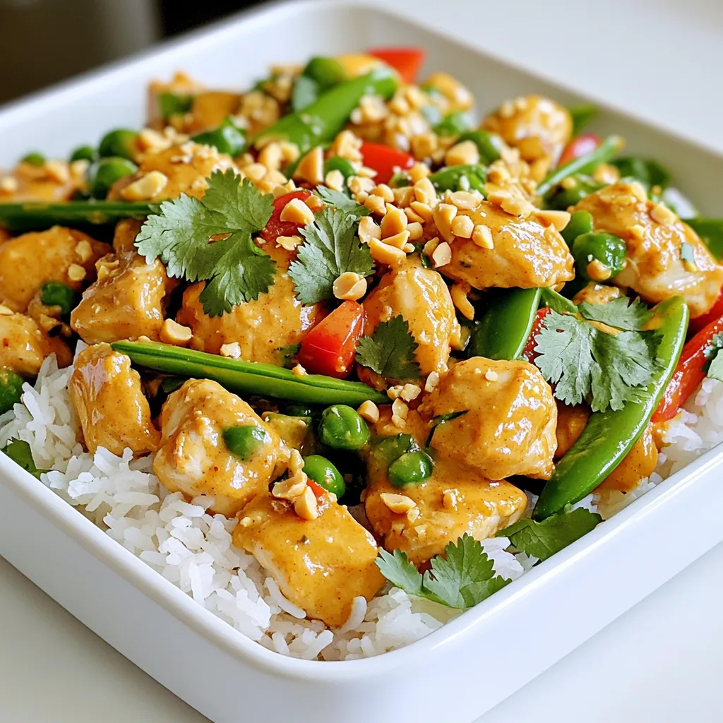 Garnish your dish with crushed peanuts for extra crunch. Fresh cilantro adds brightness and flavor. Serve the Thai peanut chicken over cooked rice or noodles. This helps soak up the sauce and makes every bite delicious.