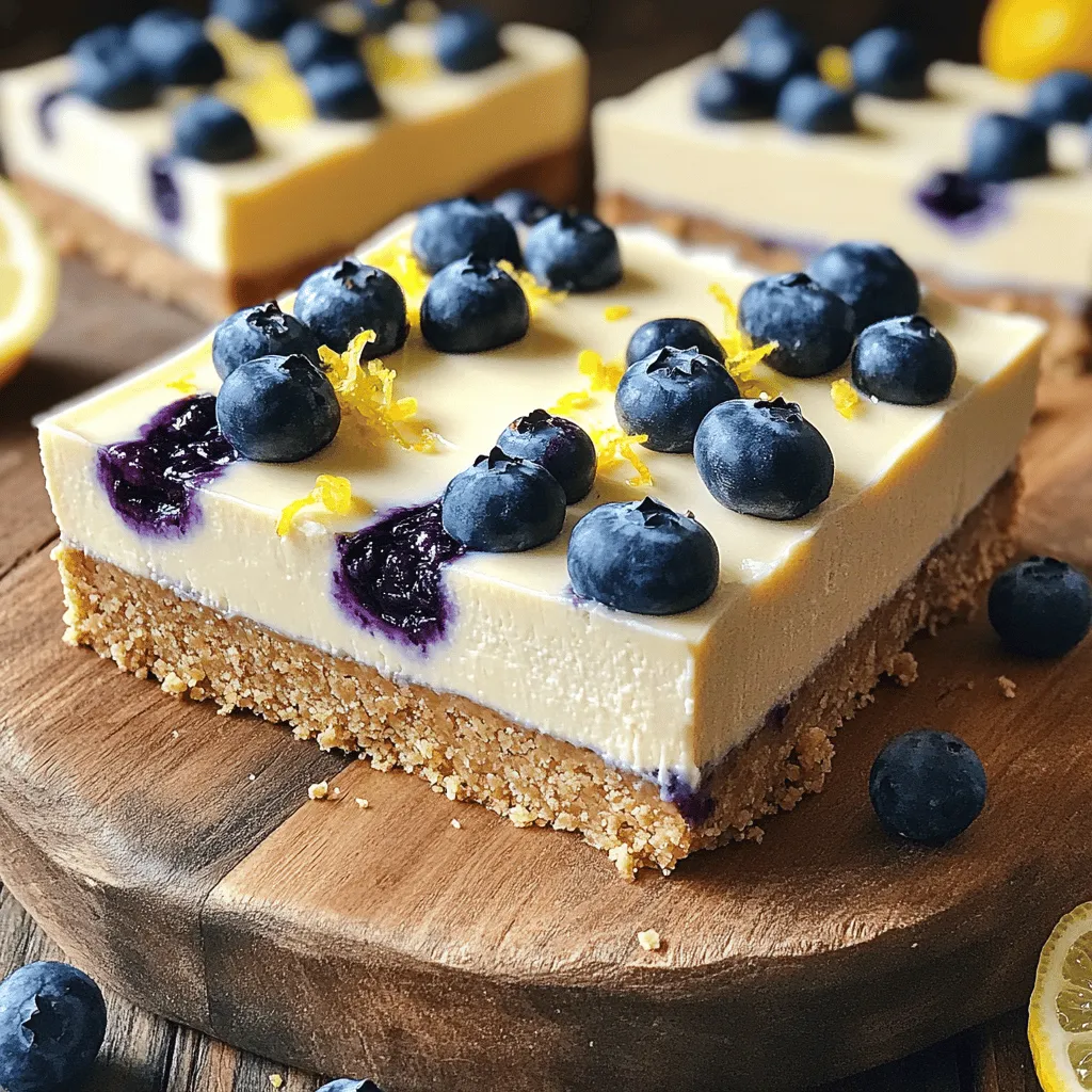 When serving, cut the bars into squares for easy sharing. Garnish with fresh blueberries and a sprinkle of lemon zest. For a touch of elegance, drizzle some coconut cream on top. Arrange the bars on a pretty platter to impress your guests. This adds to the visual appeal and makes them extra inviting!