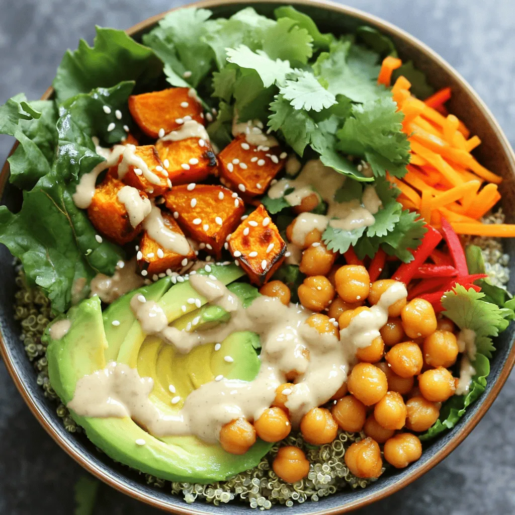 Making vegan Buddha bowls is fun and easy. Start by cooking quinoa in vegetable broth. While that’s cooking, roast sweet potatoes and chickpeas. For the sweet potatoes, toss them in olive oil and spices before roasting. Prepare a tahini dressing by mixing tahini, lemon juice, and maple syrup. Finally, assemble your bowls by layering the quinoa and toppings. Don’t forget to drizzle on the dressing.
