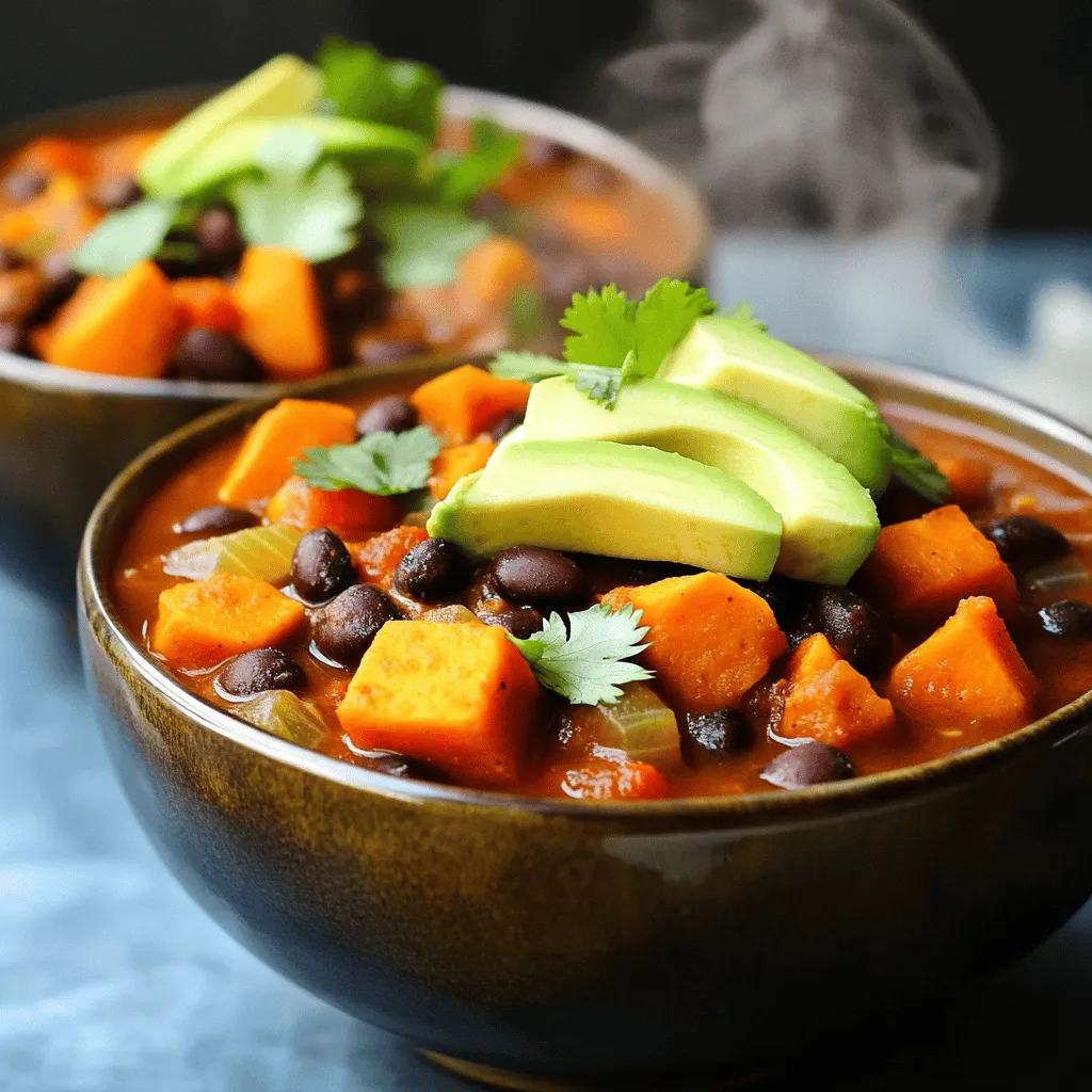 ![- 2 medium sweet potatoes, peeled and diced - 1 can (15 oz) black beans, drained and rinsed - 1 can (15 oz) diced tomatoes, with their juices - 1 large onion, chopped - 3 cloves garlic, minced - 1 bell pepper (any color), chopped - 2 cups vegetable broth - 1 tablespoon olive oil - 1 teaspoon cumin - 1 teaspoon smoked paprika - 1 teaspoon chili powder - 1/2 teaspoon cayenne pepper (adjust for heat preference) - Salt and pepper to taste - Fresh cilantro, for garnish - Avocado, sliced (optional, for topping) This chili is all about the balance of flavors. Sweet potatoes bring natural sweetness. Black beans add creaminess and protein. Diced tomatoes give a nice acidity. These three main components create a rich base. Next, we have the vegetables. Chopped onion, minced garlic, and bell pepper make the chili aromatic and flavorful. The onion and garlic mix well with the spices. They build a strong flavor that enhances the dish. Now, let’s talk spices. Cumin, smoked paprika, and chili powder are key. They add depth and warmth. Cayenne pepper can kick it up a notch, so adjust it to your heat preference. Salt and pepper tie everything together. Fresh cilantro and avocado bring brightness and richness when serving. For the full recipe, you can check the [Full Recipe]. Each ingredient plays a role in making this vegan chili a comforting delight. Start by heating a large pot over medium heat. Add one tablespoon of olive oil. Once the oil is hot, toss in one chopped onion and one chopped bell pepper. Sauté them for about five minutes. You want them to get soft but not brown. Next, add three minced garlic cloves. Stir them in until they smell great. This will make your kitchen smell amazing! Now, it’s time to add the star of the dish. Add the two medium sweet potatoes, peeled and diced, to the pot. Stir well to mix them with the onions and bell pepper. Sprinkle in one teaspoon of cumin, one teaspoon of smoked paprika, one teaspoon of chili powder, and half a teaspoon of cayenne pepper. Adjust the cayenne to suit your heat preference. Stir everything well to coat the sweet potatoes evenly with the spices. Next, pour in one can of diced tomatoes, including their juices, and two cups of vegetable broth. Bring the mixture to a gentle boil. Once it starts bubbling, reduce the heat to low. Cover the pot and let it simmer for about 20 to 25 minutes. This allows the sweet potatoes to become tender. After that, stir in one can of black beans, drained and rinsed. Cook uncovered for an additional five to ten minutes. This step helps all the flavors blend together. Season with salt and pepper to taste. For more details, check the [Full Recipe]. To enhance your chili, adjust the spices to match your heat level. If you love a kick, add more cayenne pepper. If you prefer it milder, cut back on the cayenne. Another great tip is to let the chili simmer longer. This deepens the flavors and makes the dish richer. I often simmer mine for at least 30 minutes to bring out every taste. How you serve your chili can add to the experience! Use deep bowls to hold the chili well. Top each bowl with fresh avocado slices and chopped cilantro. This not only looks appealing but also adds a nice creamy texture. A squeeze of lime on top gives a bright, zesty finish. The contrast of flavors makes the dish even better. For this recipe, use a few key kitchen tools. A large pot is essential for cooking everything together. A spatula helps to mix the ingredients well and scrape the bottom of the pot. A sharp knife is great for chopping vegetables quickly and safely. With these tools, you’ll find cooking your chili a breeze. For the full recipe, check back to the main section! {{image_2}} You can change the beans in this recipe. Kidney or pinto beans work well too. They add a nice texture and flavor. Feel free to swap out sweet potatoes for other veggies. Zucchini, corn, or carrots can add fun twists. Each option brings its own taste and charm. To make this chili gluten-free, check that your vegetable broth is certified gluten-free. This small step helps ensure everyone can enjoy it. If you need lower sodium, look for low-sodium broth. You can also reduce added salt to fit your diet. This chili pairs great with crusty bread or rice. You can also serve it with nachos for a crunchy side. It's perfect for meal prep, as you can easily make a big batch. Freeze leftovers for later, and enjoy a warming bowl anytime! After enjoying your Vegan Sweet Potato Black Bean Chili, you will want to store any leftovers properly. To keep it fresh, refrigerate in sealed containers for up to 5 days. This way, you can savor the flavors again soon. If you want to save it for longer, freeze the chili for up to 3 months. Just make sure to use freezer-safe containers. When you're ready to enjoy your chili again, reheating is simple. You can warm it up on the stove or in the microwave until heated through. If the chili looks a bit thick, add a splash of vegetable broth. This will help restore its creamy texture and make it even tastier. Enjoy each bite just like the first time! It takes about 15 minutes to prep. The total time is 50 minutes. Yes, you can! Zucchini, corn, and carrots make great additions. They add great texture and flavor. Absolutely! This chili freezes well and is great for meal prep. You can make a big batch and enjoy it later. For the full recipe, check out the detailed steps I shared earlier. This vegan sweet potato black bean chili is packed with flavor and nutrition. We started with sweet potatoes, black beans, and tomatoes, then added fresh veggies and spices. Each step built layers of taste, perfect for meal prep. You now have tips to customize the flavors and suggestions for serving. Enjoy this easy dish this week or freeze it for later. Cooking should be fun and rewarding. Embrace these ideas and make this chili your own!](https://momdishmagic.com/wp-content/uploads/2025/07/1c3cb483-dcd9-4236-af89-92551d829f35-768x768.webp)
