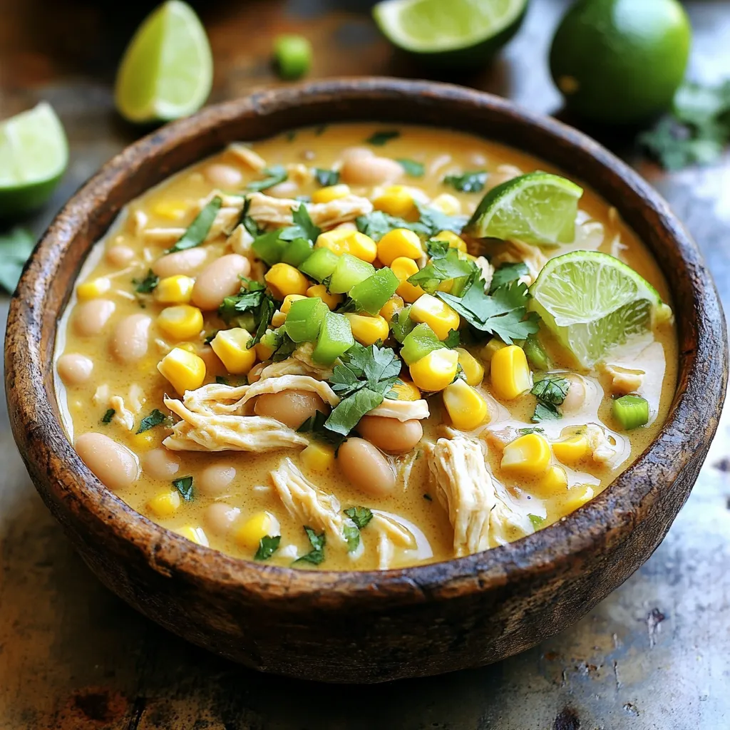 To make this white bean chicken chili, you need a few simple ingredients. Here’s what you will gather: - 2 boneless, skinless chicken breasts - 1 can (15 oz) white beans (cannellini or great northern), drained and rinsed - 1 cup corn (fresh, frozen, or canned) - 1 medium onion, diced - 2 cloves garlic, minced - 1 green bell pepper, diced - 1 can (4 oz) diced green chiles - 2 cups chicken broth - 1 teaspoon ground cumin - 1 teaspoon chili powder - ½ teaspoon smoked paprika - Salt and pepper to taste - 1 cup sour cream or Greek yogurt for creaminess - Fresh cilantro and lime wedges for garnish Each of these ingredients plays a key role in the flavor and texture of the dish. The chicken provides protein, while the white beans add creaminess. Corn and bell pepper give a nice crunch. The spices bring warmth and depth to the chili. Don't forget the sour cream or Greek yogurt! It adds a rich, smooth finish. You can also use cilantro and lime to brighten each bite. This recipe is flexible. You can adapt it to your taste or what you have on hand. Just make sure to have fun with it! - Layering the Slow Cooker Start by placing the chicken breasts at the bottom of the slow cooker. This step keeps the chicken moist. - Mixing Ingredients In a bowl, mix the drained white beans, corn, diced onion, minced garlic, diced green bell pepper, and diced green chiles. This mix adds great flavor and texture. Pour this mixture over the chicken in the slow cooker. - Cooking Times Cover the slow cooker and set it on low for 6-8 hours or high for 3-4 hours. The chicken should cook until tender and easy to shred. - Shredding the Chicken When the cooking time is up, shred the chicken inside the slow cooker using two forks. Mix the chicken back into the chili for even flavor. - Creaminess Addition Stir in the sour cream or Greek yogurt. This makes the chili creamy and rich. Mix well until everything is blended. - Adjusting Seasoning Taste the chili and add salt and pepper as needed. Adjusting the seasoning helps bring out all the flavors. Serve warm, and don’t forget to garnish with fresh cilantro and lime wedges for a bright finish. - Suggested Spices: To boost flavor, try adding more spices. You can use extra cumin, chili powder, or smoked paprika. These spices add depth and warmth to your chili. - Fresh Herbs: Fresh cilantro works great for garnishing. It adds a bright taste. You can also try adding fresh lime juice for a zesty kick. - Creaminess Alternatives: If sour cream or Greek yogurt is not your thing, use cream cheese. It gives a rich and creamy texture. You can also blend in cashew cream for a dairy-free option. - Bean Options: You can mix different beans for fun textures. Black beans or pinto beans can add variety. Each type brings its own taste. - Slow Cooker vs. Stovetop: The slow cooker makes this chili easy. It allows flavors to meld over time. If you're short on time, cooking on the stovetop is faster. Just simmer until the chicken is tender. - Meal Prep Options: This chili is great for meal prep. You can make a big batch and divide it into containers. It lasts well in the fridge and tastes better the next day. {{image_2}} Protein Substitutes You can swap the chicken breasts for turkey or pork. Both will work well with the spices. If you prefer plant-based options, use firm tofu or tempeh. These choices add protein and absorb flavor nicely. Vegetables to Include Feel free to add more veggies for taste and texture. Zucchini, carrots, or celery can enhance your chili. You can also toss in spinach or kale for extra greens. These additions make the dish more colorful and nutritious. Gluten-Free Options This recipe is already gluten-free. Just make sure your chicken broth has no gluten ingredients. You can also check all canned goods for gluten. Vegan Adaptation For a vegan version, replace chicken with chickpeas or lentils. Use vegetable broth instead of chicken broth. Swap sour cream for cashew cream or coconut yogurt for creaminess. This keeps all the flavor while being plant-based. Accompanying Dishes Serve the chili with warm cornbread or tortilla chips. A side salad can add freshness and crunch. You might also try rice or quinoa for a hearty meal. Garnish Ideas Top your bowl with fresh cilantro and lime wedges. Avocado slices or diced tomatoes can add more color and flavor. A sprinkle of cheese can also enhance the dish if you enjoy dairy. This chili lasts about 3 to 4 days in the fridge. To keep it fresh, store it in an airtight container. Make sure to cool it to room temperature before sealing. This helps keep the flavors intact and prevents spoilage. You can freeze this white bean chicken chili for up to 3 months. To freeze, let the chili cool completely. Then, use freezer-safe bags or containers. Remove as much air as you can from the bags before sealing. This keeps the chili safe from freezer burn. For thawing, place the frozen chili in the fridge overnight. You can also use the microwave for quick thawing. Just be careful not to overheat it. When reheating, the stove is best. Pour the chili into a pot and heat over medium. Stir often until it’s hot. This keeps the texture nice and creamy. You can also use the microwave. Heat in short bursts, stirring in between. This way, you warm it evenly without cooking it further. Yes, you can use frozen chicken. Just add a bit more time. Cook it on high for about 4-5 hours. Make sure the chicken reaches 165°F for safety. Frozen chicken can still turn out tender and juicy. To spice it up, add jalapeños or a pinch of cayenne pepper. You can also use spicy diced green chiles. For a kick, try adding some hot sauce before serving. Adjust to your taste for the perfect heat. Greek yogurt is a great swap for sour cream. It gives a similar creaminess. You can also use cream cheese for a richer taste. Silken tofu works well for a dairy-free option too. Leftovers can last 3-4 days in the fridge. Store them in airtight containers. For best taste, reheat and en
